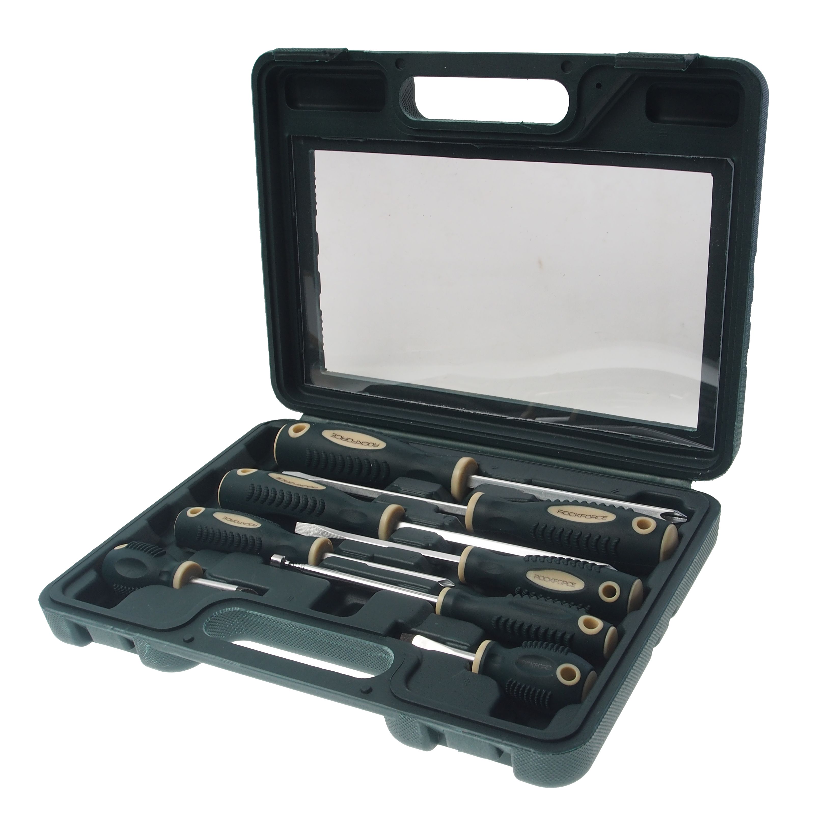 Набор отверток магнитных "Profi",8 предметов в наборе(SL:5.5×100,6.5×125,8.0×150,9.5×175,6.5×38мм; PH:1×75,2×38,2×100,3×125мм+магнит телескоп190-550мм)в кейсе, в наборе охвачены наиболее часто используемые размеры, что позволяет работать с различными формами и типами крепежа. Данный набор отлично подойдет как для бытового, так и для профессионального использования. Инструмент изготовлен из прочной стали и имеет удобную рукоятку, которая обеспечит эффективность даже при длительной эксплуатации.