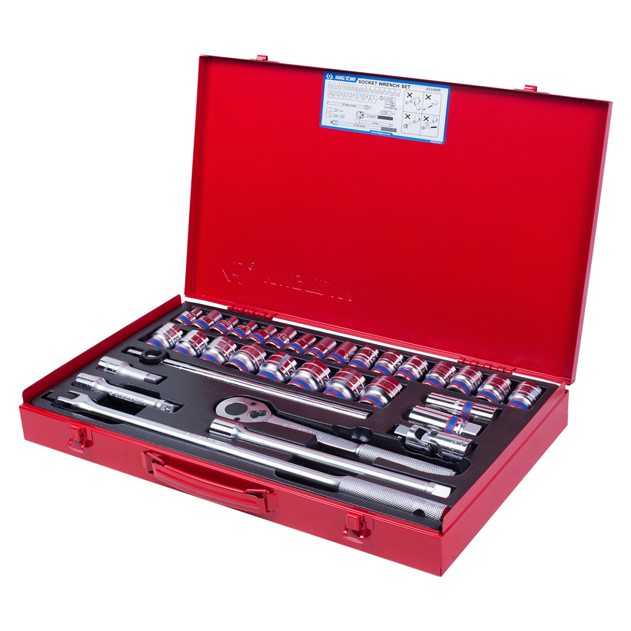 Головки и принадлежности 1/2" (12,7 мм): Головки торцевые стандартные 12-гранные, серия 4330M 8, 9, 10, 11, 12, 13, 14, 15, 16, 17, 18, 19, 20, 21, 22, 23, 24, 25, 26, 27, 28, 29, 30, 32 мм Головка свечная 6-гранная, серия 4635M 16 мм, длина 70 мм, резиновый фиксатор Головка свечная 12-гранная, серия 4630M 21 мм, длина 70 мм, резиновый фиксатор Трещотка серии 4779-10FR длина 250 мм, 32 зубца, флажковый механизм переключения реверса, насечка на рукоятке Вороток скользящий (ползунок), серии 4572-12 длина 300 мм Вороток с шарниром, серия 4452-18FR длина 450 мм Удлинители серии 4251R длина 75, 125 и 250 мм Кардан серии 4791R длина 77,5 мм