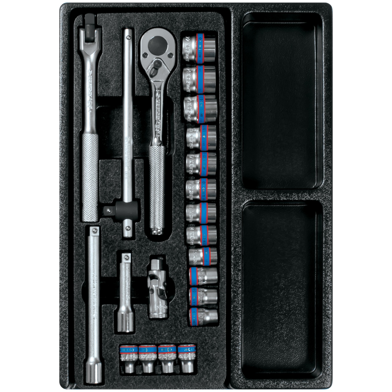 Размер ложемента адаптирован для размещения на полке инструментальной тележки.