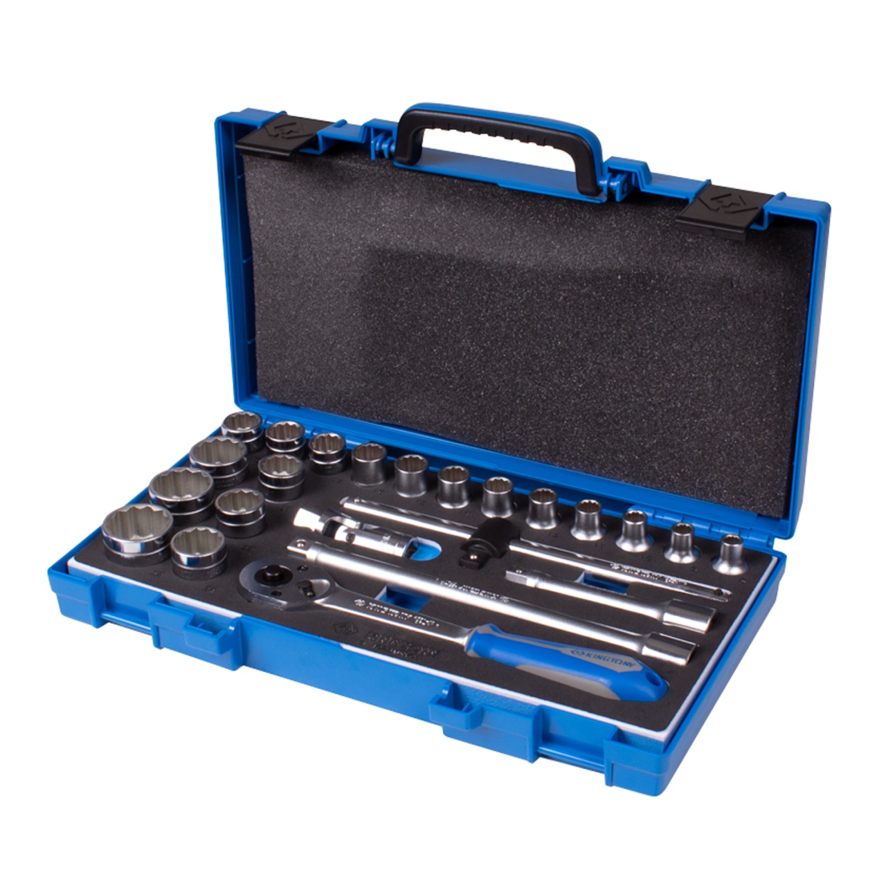 Материалы – инструментальная сталь Cr-V, хром, PP+TPR (рукоять трещотки), EVA (ложемент), пластик ABS (кейс)