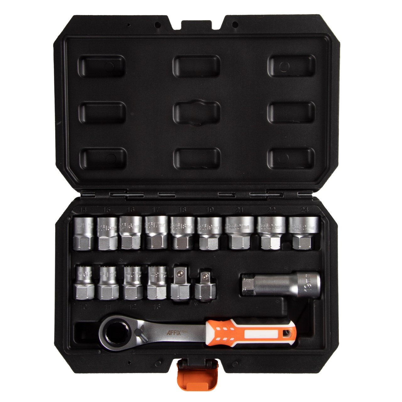 – Головки торцевые 12-гранные со сквозным отверстием: 10, 11, 12, 13, 14, 15, 16, 17, 18, 19, 21, 22, 24 мм