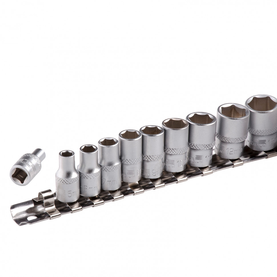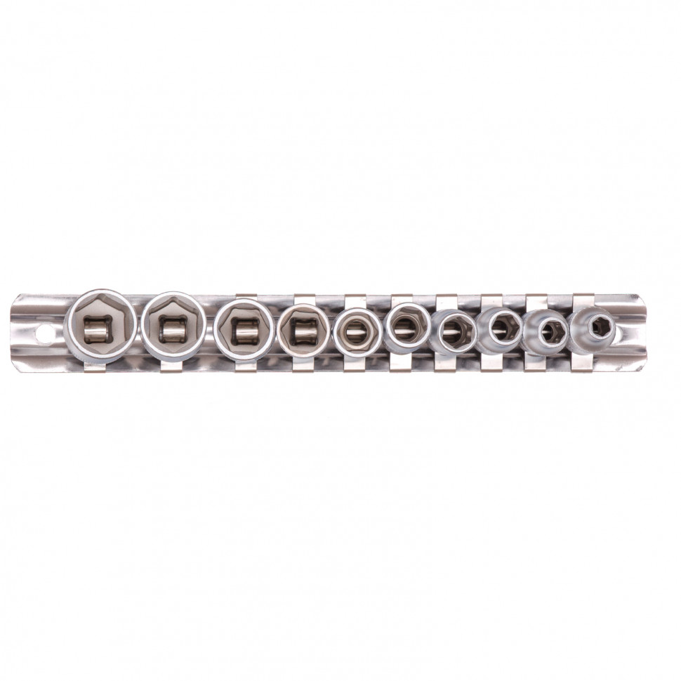 Набор 6-гранных торцевых головок Stels 13602 из стали CrV включает в себя 10 насадок 4-13 мм с присоединительным размером 1/4 дюйма. Он пригодится для ремонта крупногабаритной техники и обслуживания авто. Торцевые головки выдерживают высокие нагрузки, поэтому подходят для профессионального применения.ПреимуществаВысокий ресурс — корпус головок изготовлен из прочной хромованадиевой стали.Защита от разрушения — матовое хромоникелевое покрытие предохраняет головки от коррозии.Удобное хранение — насадки поставляются с металлической планкой-держателем.