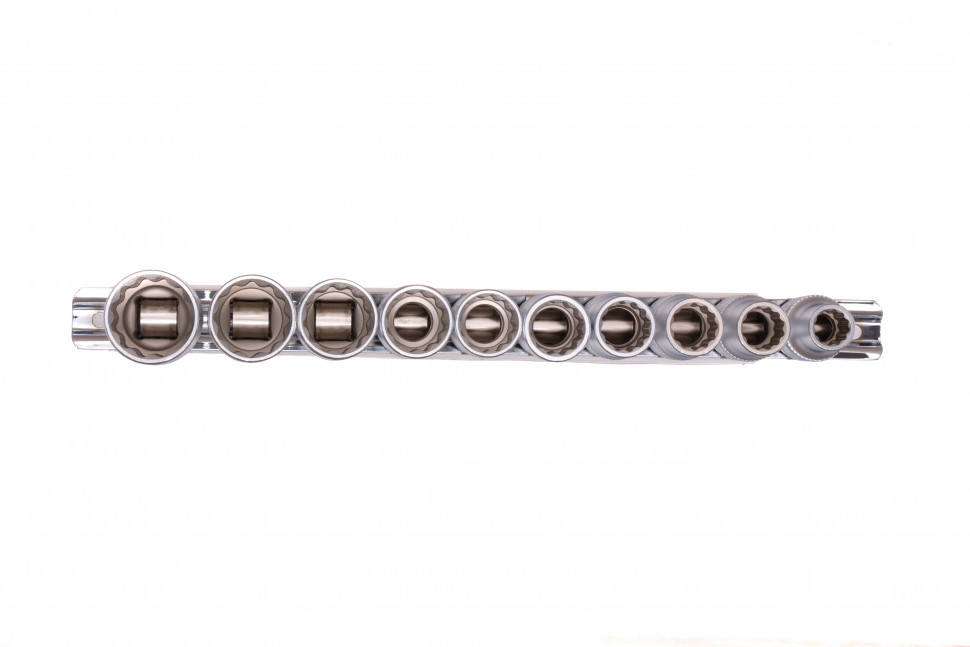 Набор 12-гранных торцевых головок Stels 13638 с посадочным размером 1/2 дюйма, из стали CrV, состоит из 10 насадок 10-22 мм для трещоток и гайковертов. С их помощью монтируют и демонтируют резьбовые соединения во время ремонта или обслуживания авто. 12-гранные торцевые головки с углом поворота 30 градусов удобны для работы в ограниченном пространстве.ПреимуществаПрочность — головки из стали хромованадиевой группы устойчивы к высоким нагрузкам.Износостойкость — твердость рабочих частей составляет 42 HRC, поэтому насадки подходят для интенсивного применения.Защита от разрушения — головки с матовым хромоникелевым покрытием устойчивы к коррозии.Удобное хранение и транспортировка — в комплект входит специальная металлическая плашка-держатель.