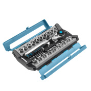 Набор Gross 14144 включает в себя 36 предметов из стали CrV-группы с посадочным квадратом 1/2 дюйма: 17 торцевых головок, трещотку со 120 зубьями, переходник, адаптер и 16 бит. Применяется для монтажа и демонтажа резьбовых соединений при проведении технического обслуживания авто или для бытовых ремонтных работ. Набор подходит не только для самостоятельного использования в гараже и дома, но и для профессиональной эксплуатации на станциях техобслуживания.Преимущества Прочность и высокий ресурс — инструменты выполнены из качественной стали хромованадиевой группы. Удобная работа в труднодоступных местах — цельнокованная трещотка со 120 зубьями позволяет вращать крепеж максимально плавно и мягко. Функция быстрого сброса — снять оснастку с трещотки можно одним движением. Наличие реверса — можно быстро менять направление вращения трещотки для легкого перехода от монтажа к демонтажу крепежей. Удобное хранение и транспортировка — набор поставляется в прочном пластиковом боксе.