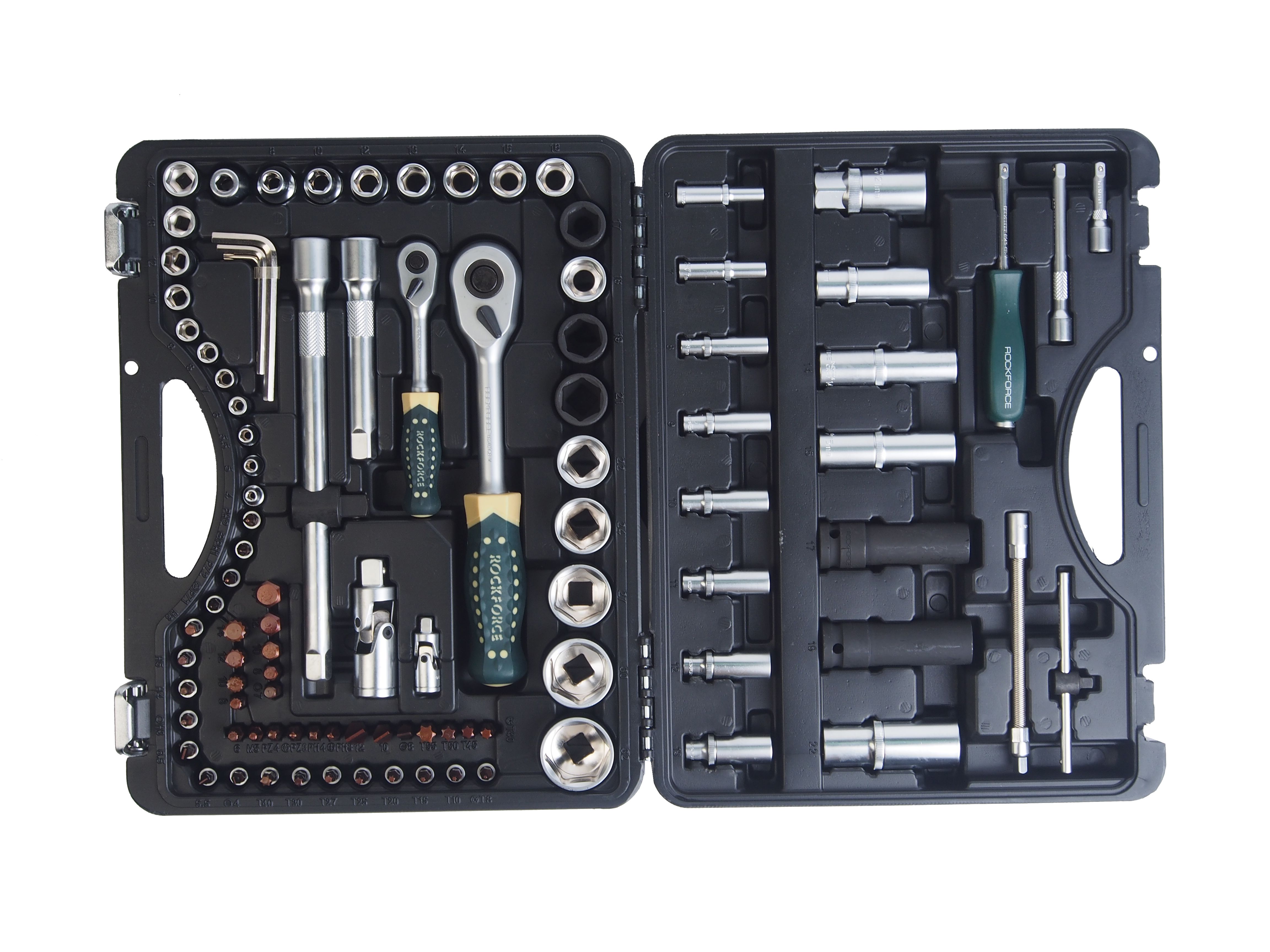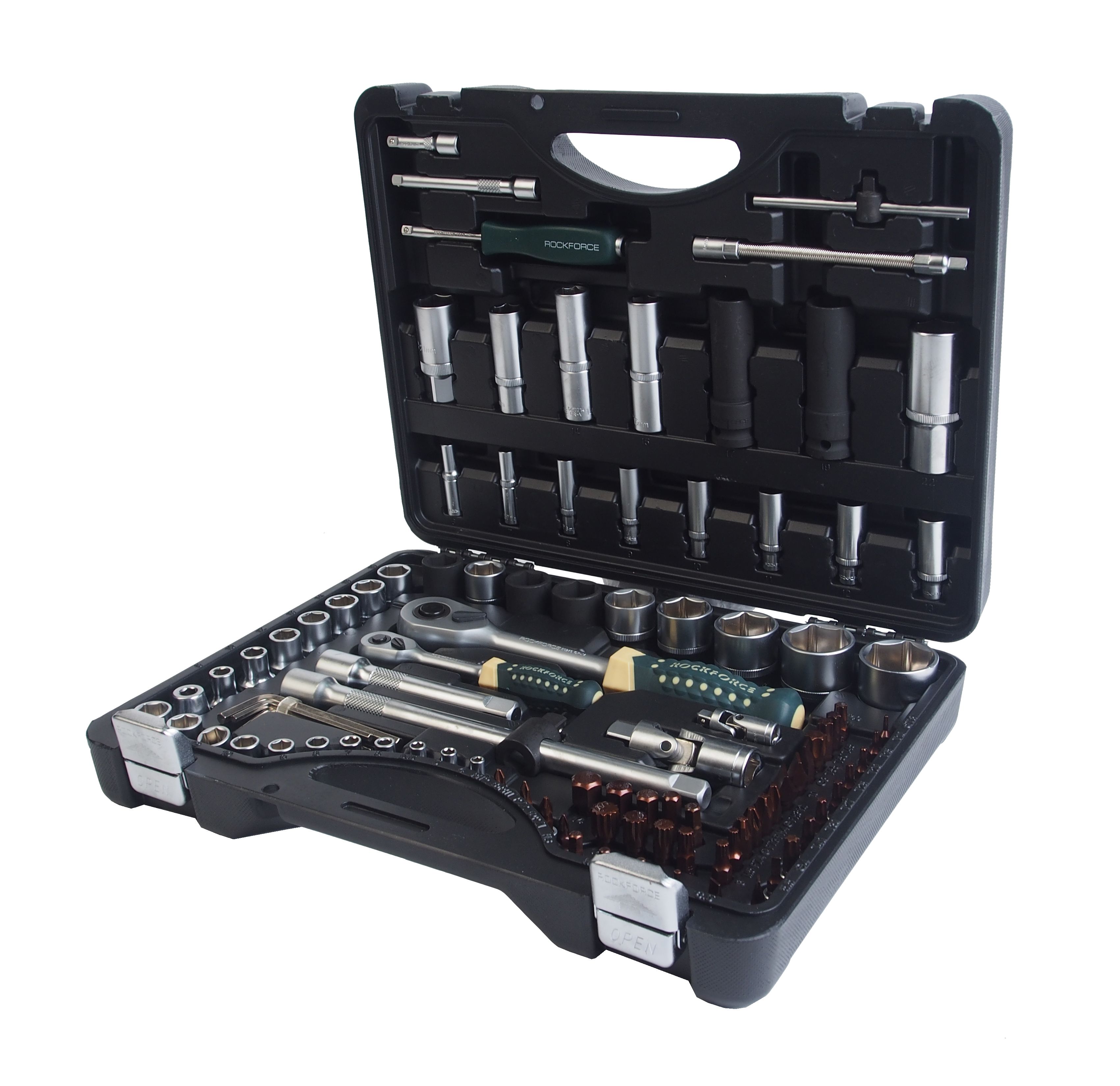 Набор торцевых головок RockForce с широким ассортиментом торцевых головок с приводом 1/2″ & 1″ DR. Привод является основным элементом, на котором стоится вся структура сборного слесарно-монтажного инструмента. В наборе представлено 94+6 предметов для широкого рабочего применения.