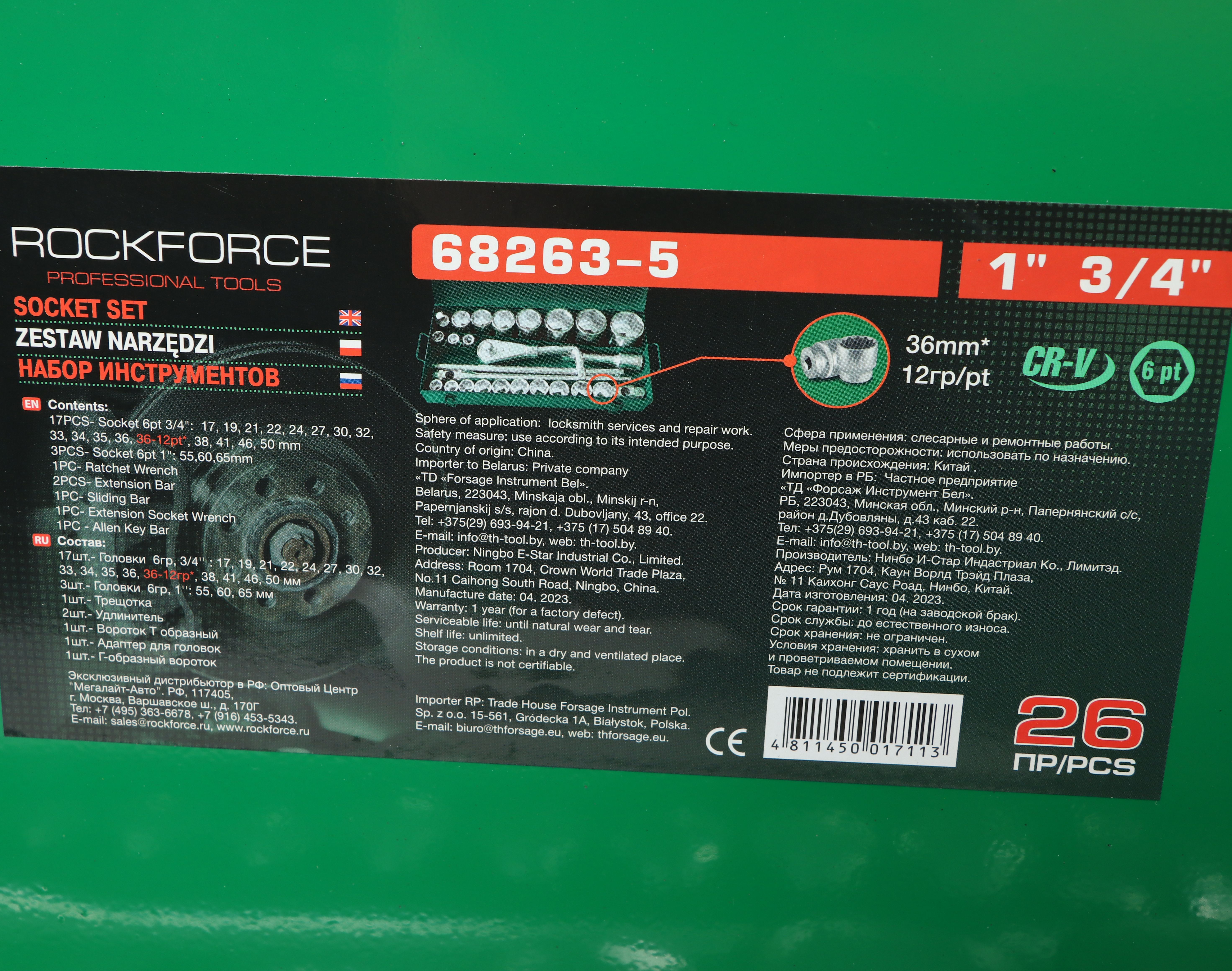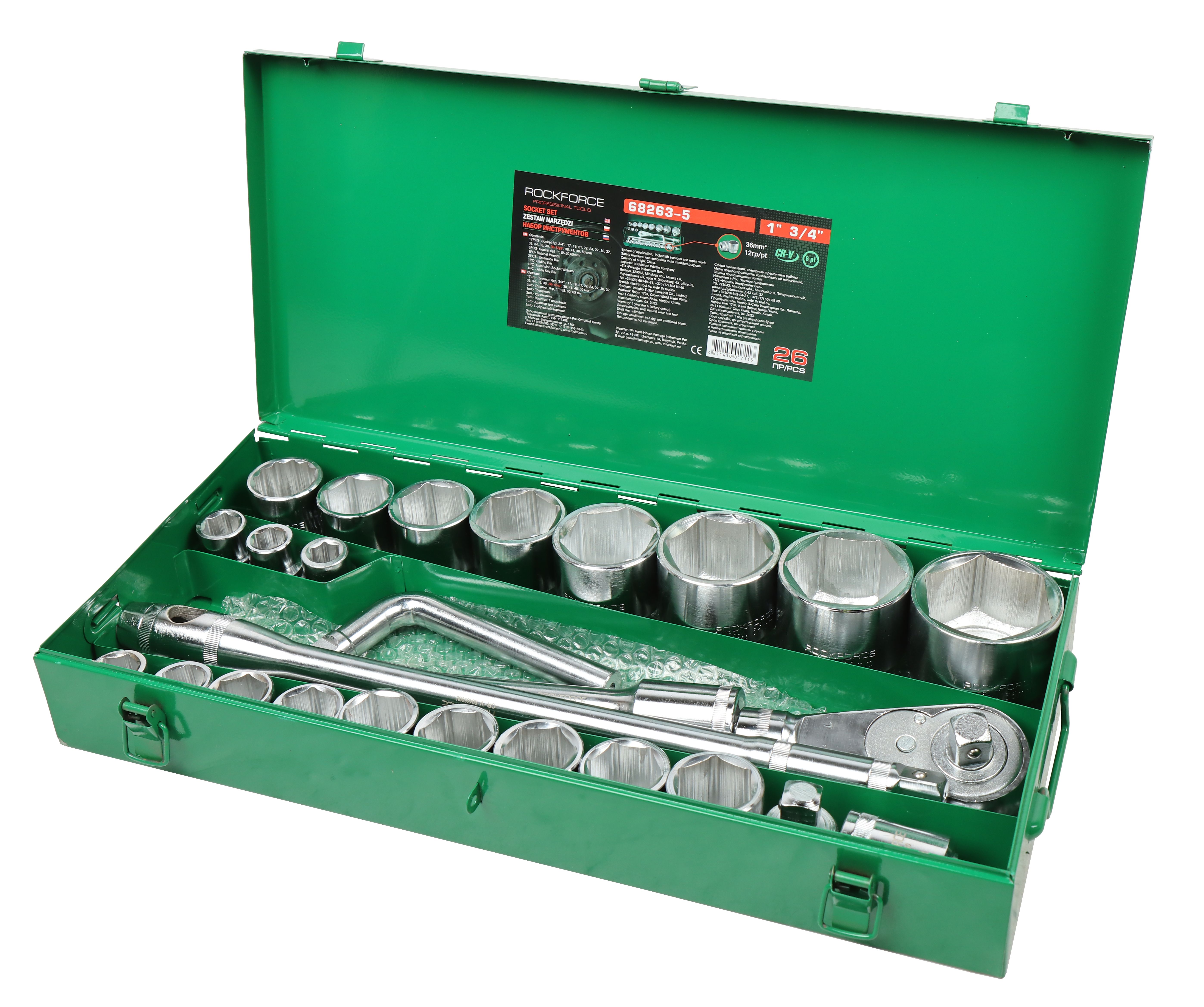 17шт.- Головки ударные 6гр, 3/4'' : 17,19,21,22,24,27,30,32,33,34, 35,36,36-12гр,38,41,46,50 мм