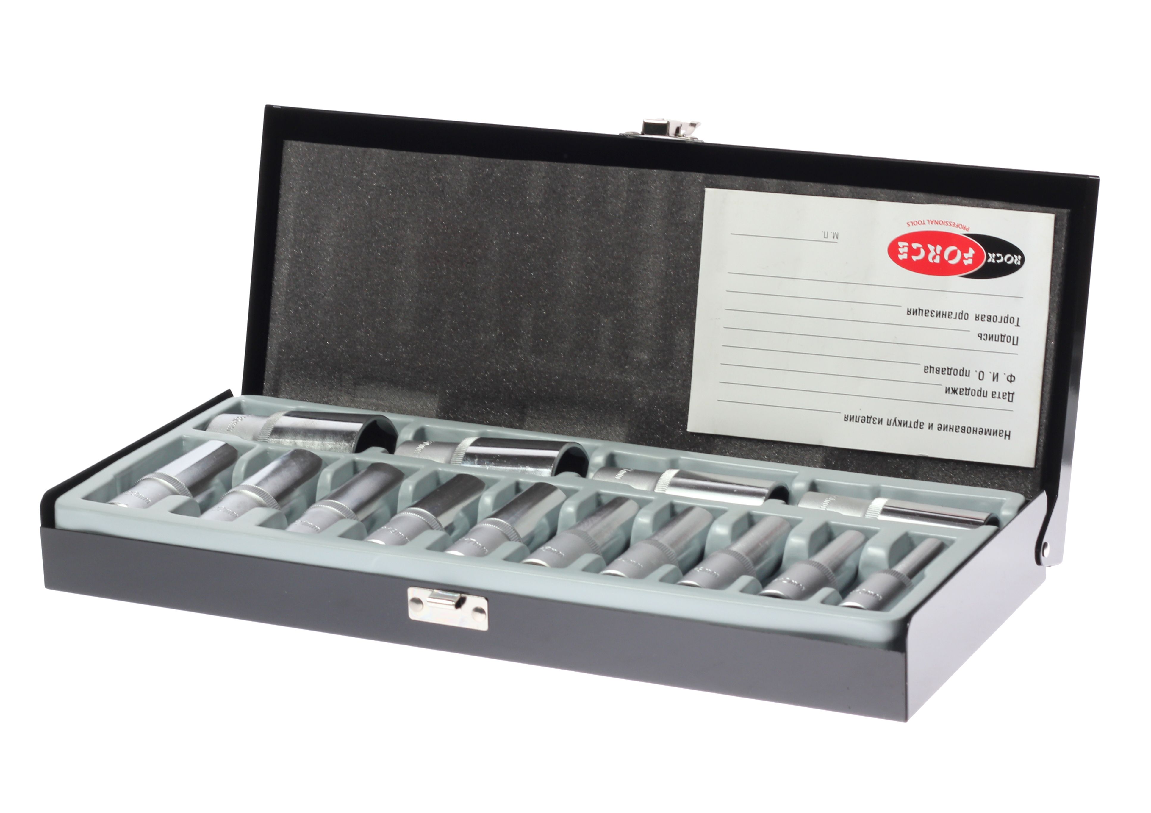 Набор торцевых головок RockForce: 1"DR 6-гранных 14 предметов в наборе Набор предназначен для крепежных изделий. Головки изготовлены из хром-ванадиевой стали высокого качества с полуматовым покрытием, что делает ее устойчивой к коррозии и износу. Изделие обладает большим рабочим ресурсом и выдерживает интенсивные нагрузки, поэтому его широко используют на производстве и в автосервисах.