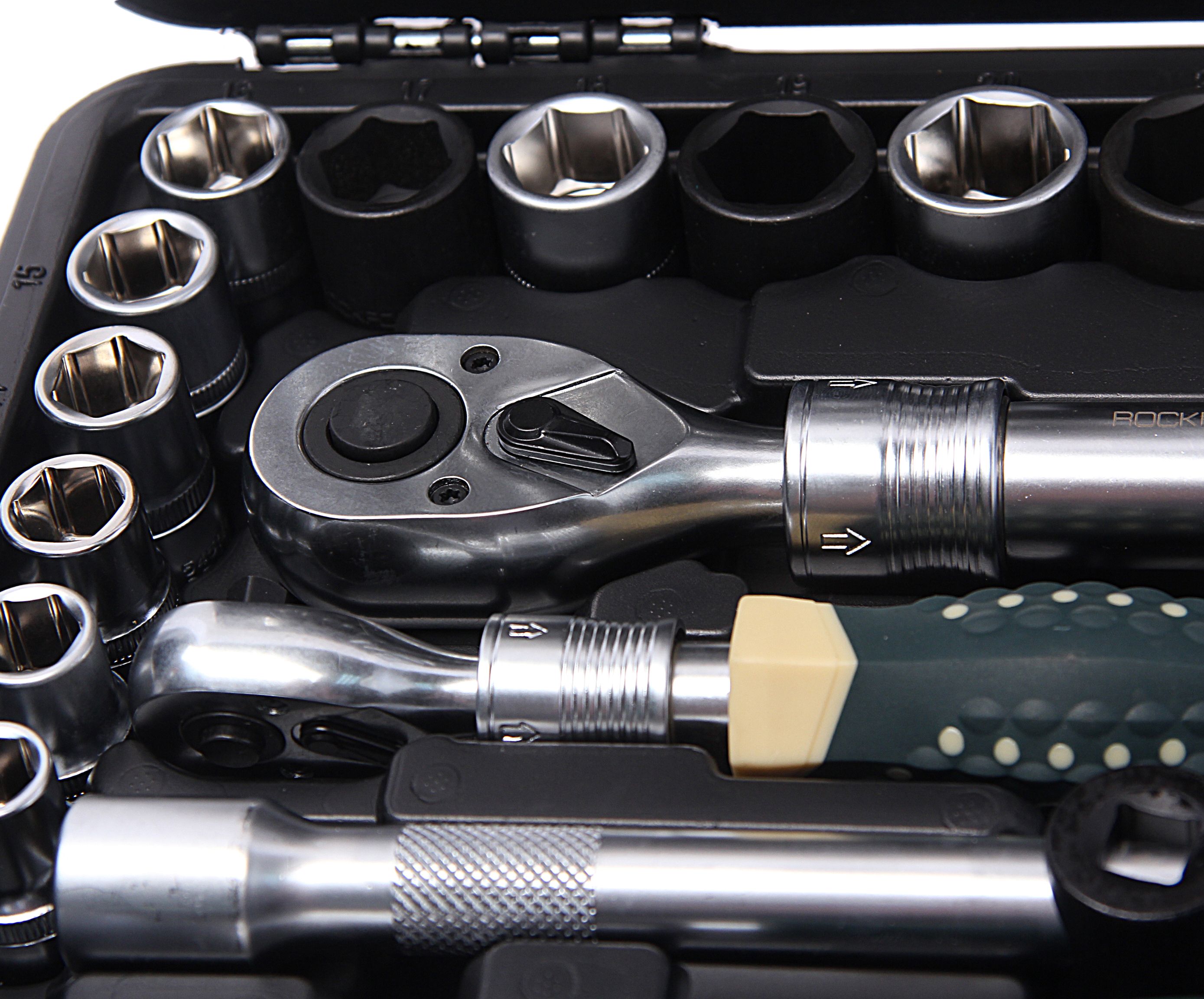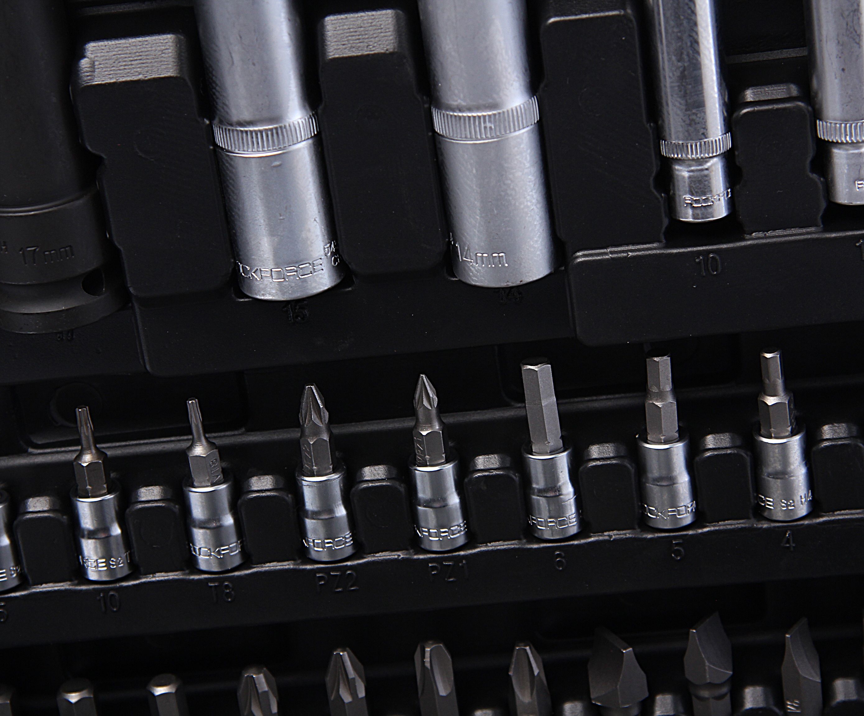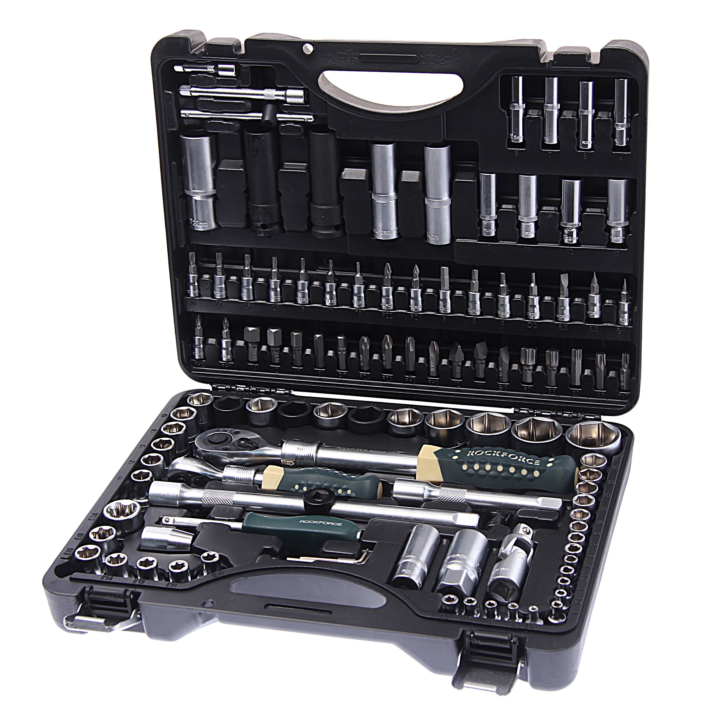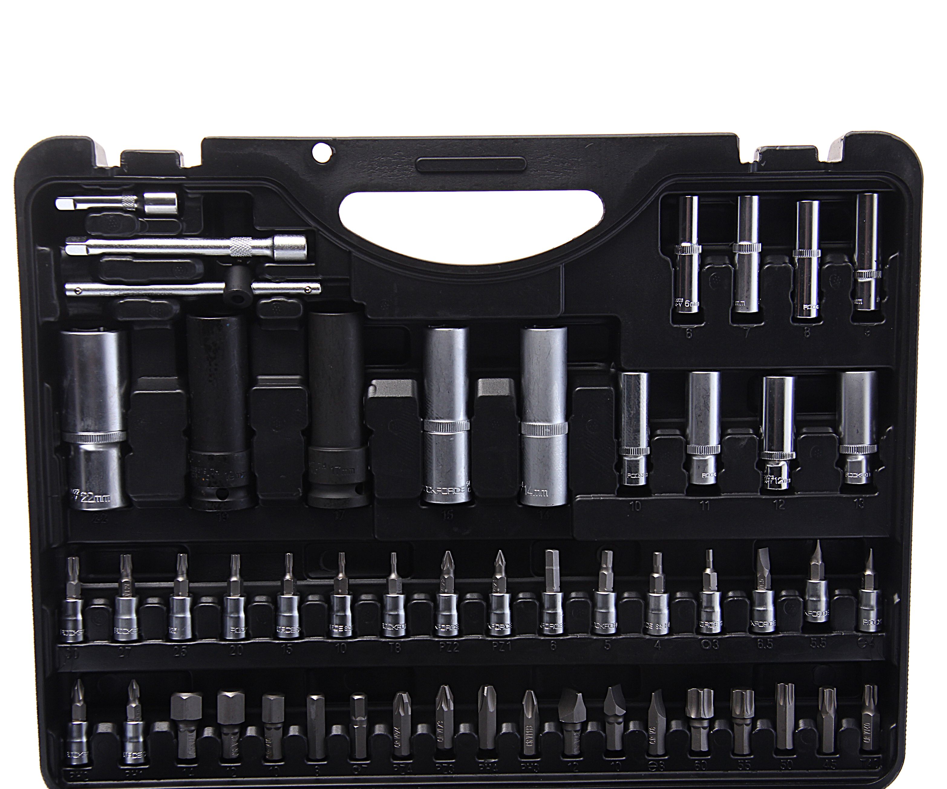 Посадочный квадрат: 1/2", 1/4". Тип головок: 6-гранные, Е-профиль, короткие, глубокие. Комплектация: головки 1/4"короткие 25 мм: 4, 4.5, 5, 5.5, 6, 7, 8, 9, 10, 11, 12, 13, 14 мм; головки 1/4"глубокие 50 мм: 6, 7, 8, 9, 10, 11, 12, 13 мм; головки 1/4"Е-профиль короткие 25 мм: Е4, Е5, Е6, Е7, Е8; головки-биты 1/4"HEX 35 мм: 3, 4, 5, 6 мм; головки-биты 1/4"TORX 35 мм: T8, T10, T15, T20, T25, Т27, T30; головки-биты 1/4"SL 35 мм: 4, 5.5, 6,5; головки-биты 1/4"РН 35 мм: РН.1, РН.2; головки-биты 1/4"PZ 35 мм: PZ.1, PZ.2; трещотка телескопическая 1/4"; рукоятка 1/4"150 мм; вороток Т-образный 1/4"115 мм; удлинители 1/4"50, 100 мм; кардан шарнирный 1/4"; биты 5/16"HEX 30 мм: 7, 8, 10, 12, 14 мм; биты 5/16"TORX 30 мм: Т40, Т45, Т50, Т55, Т60; биты 5/16"SL 30 мм: 8, 10, 12; биты 5/16"PH 30 мм: PH.3, PH.4; биты 5/16"PZ 30 мм: PZ.3, PZ.4; головки 1/2"короткие 38 мм: 10, 11, 12, 13, 14, 15, 16, 17, 18, 19, 20, 21, 22, 24, 27, 30, 32 мм (усиленные на 17, 19, 21 мм); головки 1/2"глубокие 77 мм: 14, 15, 17, 19, 22 мм (усиленные на 17, 19 мм); головки 1/2"Е-профиль короткие 38 мм: Е10, Е11, Е12, Е14, Е16, Е18, Е20, Е24; головки свечные 1/2": 16, 21 мм; трещотка телескопическая 1/2"; удлинители 1/2": 125, 250 мм; кардан шарнирный 1/2"; адаптер усиленный с отверстием с 3/8"(F)*1/2"(M) ; битодержатель 1/2"(F)*5/16"(F); ключи Г-образные 6-гранные короткие: 1.5, 2, 2.5 мм. Пластиковый кейс с металлическими защелками.
