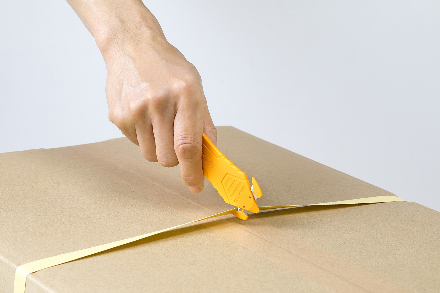 Используется для удобного открывания картонных коробок, резки стретч-пленки, пластиковых лент, скотча.