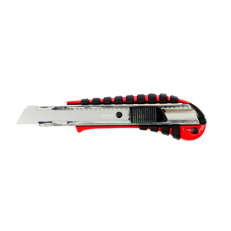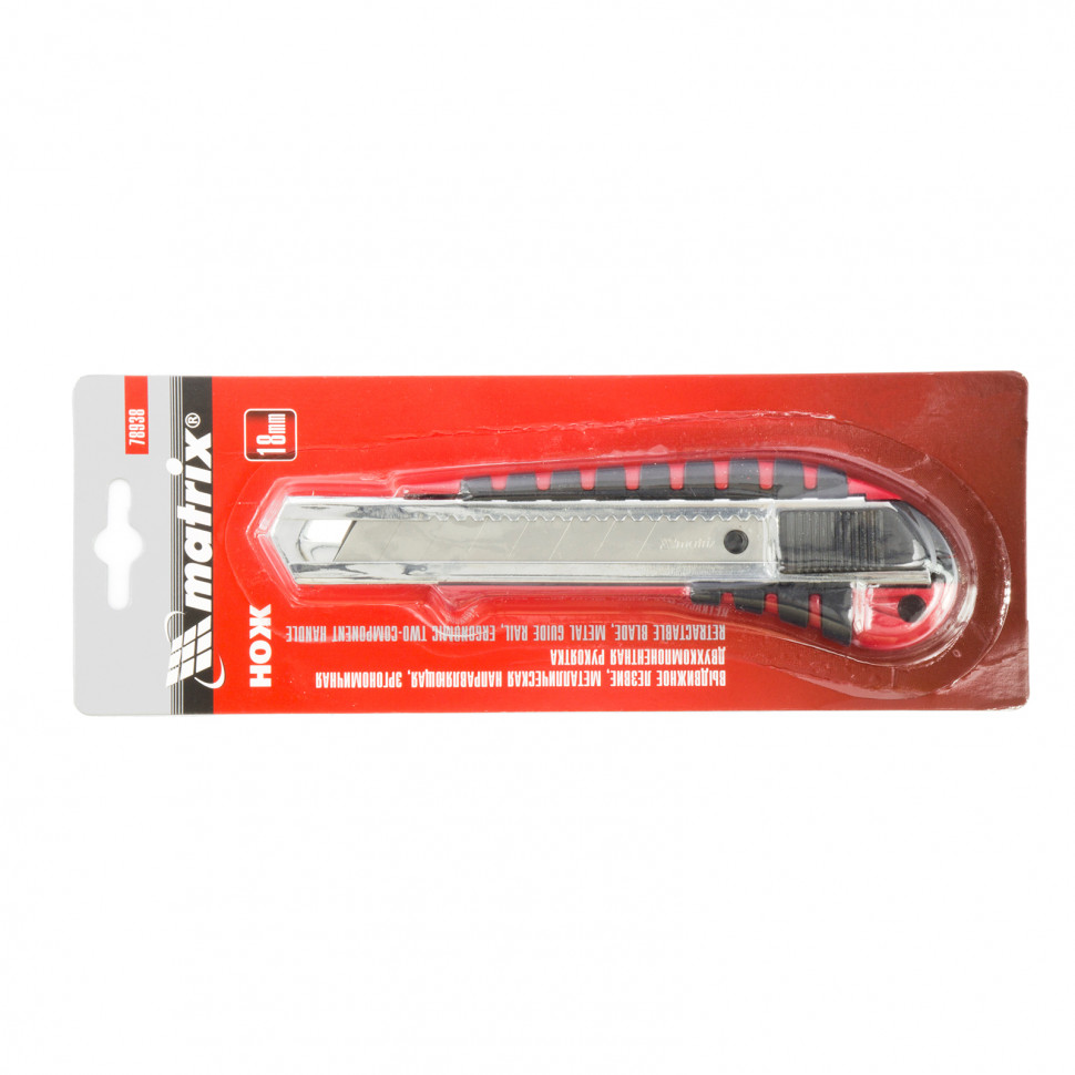 Нож Matrix 78938 с выдвижным лезвием шириной 18 мм, металлической направляющей и эргономичной двухкомпонентной рукояткой пригодится в мастерской, для бытового использования, проведения ремонтных работ, а также для рукоделия. Он с легкостью разрезает бумагу, картон и более плотные материалы, например, кожаные изделия.ПреимуществаПрочность и твердость — лезвие выполнено из стали 60.Металлическая направляющая — корпус защищен от повреждений.Сегментированное лезвие — его часть можно легко отломить, если режущая кромка потеряла остроту.Эргономичный корпус с обрезиненными рукоятками — руки не устают даже при интенсивном использовании.