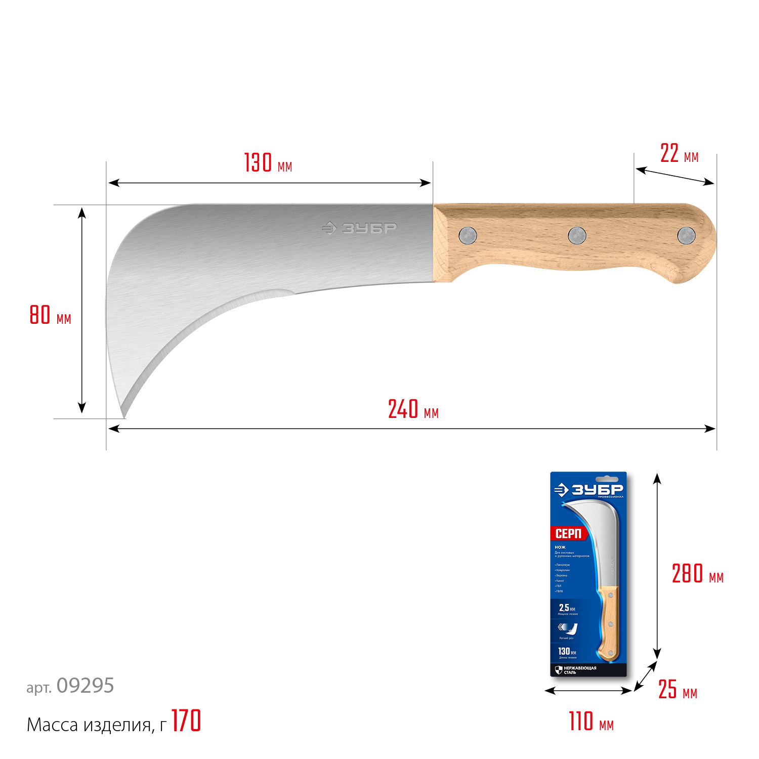 Специальный нож с изогнутой формой лезвия отлично подходит для реза листовых и рулонных материалов: линолеум, ковролин, веревка, канат, ГВЛ, ГВЛВ