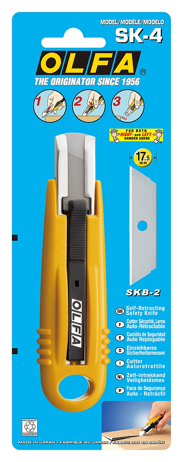 Полуавтоматический нож OLFA SK-4 с втягивающимся лезвием идеально подойдет тем, кому нужен точный рез и максимальная безопасность. Мощная пружина из нержавеющей стали сразу убирает лезвие при потере контакта с поверхностью, сводя к минимуму возможность случайно порезаться.