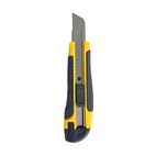 Предназначен для резки бумаги, картона, ткани и пластика. Усиленный обрезиненный корпус. Металлическая направляющая. Оснащен отламывающимся сегментированным лезвием. Усиленный обрезиненный корпус с прямоугольным фиксатором.