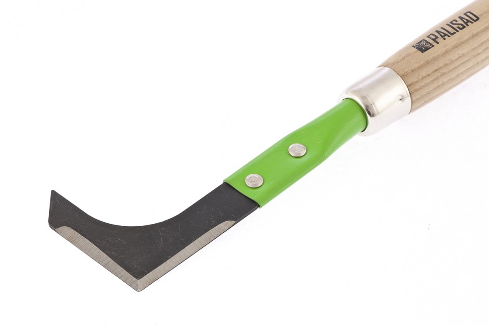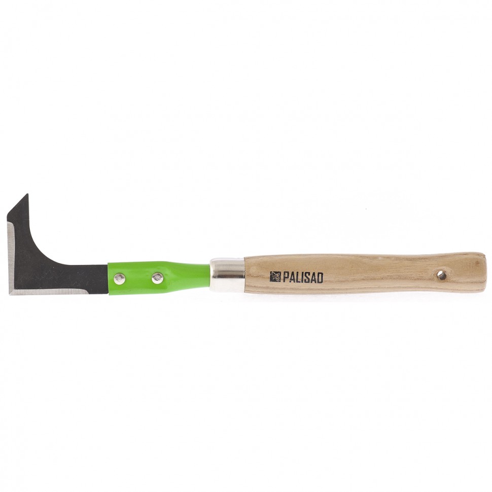 Универсальный стальной нож Palisad Classic 62324 длиной 350 мм, с рабочей частью шириной 70 мм и деревянной рукояткой, используется для подрезания корней сорняков и очистки межплиточного пространства. Инструмент успешно справляется с этими задачами благодаря двум острым кромкам, серповидному лезвию и наконечнику. Нож будет полезен для ухода за растительностью и садовыми дорожками на дачном участке.ПреимуществаПрочность — рабочая часть изготовлена из среднеуглеродистой стали и закалена.Долговечность — черненая поверхность режущей части устойчива к коррозии, лакированная рукоятка не рассыхается и не разбухает.Прочная конструкция — рабочая часть закреплена в основании заклепками.Комфортная работа — удобная деревянная рукоятка надежно ложится в руку.Удобное хранение — в рукоятке имеется отверстие для подвешивания инструмента.