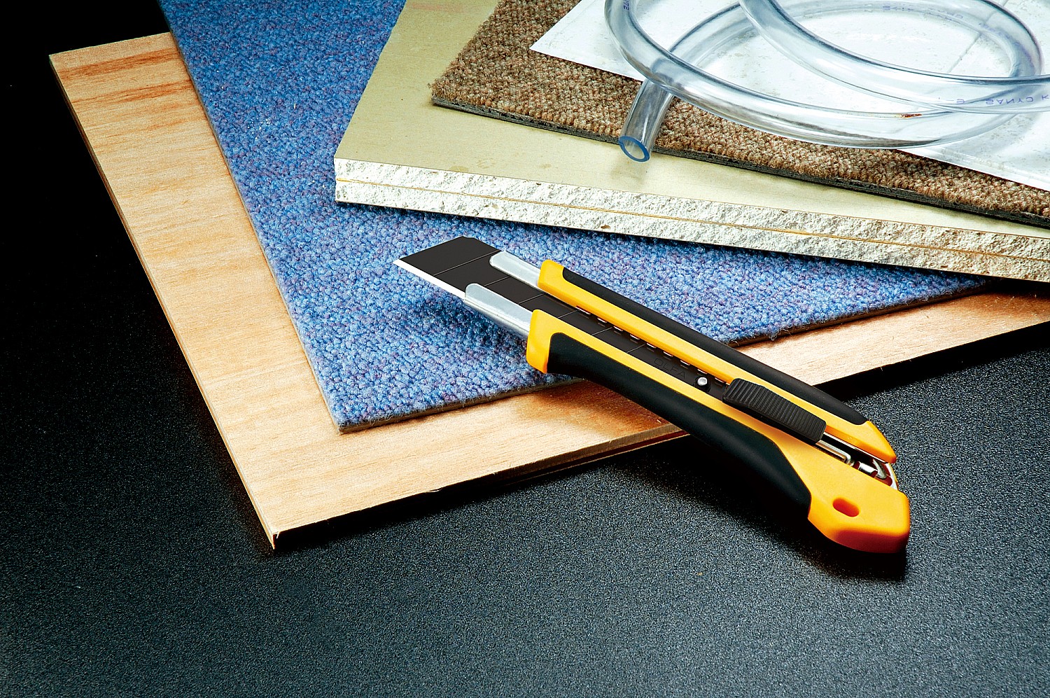 В серию OLFA X-design ComfortGrip был добавлен сверхпрочный нож XH-AL с системой фиксации лезвия Auto-Lock. Корпус инструмента изготовлен из армированного фибергласса, что делает его легким, но очень прочным. Увеличенная рукоятка позволяет резать даже твердые материалы, а противоскользящие резиновые накладки по периметру обеспечивают максимальный контроль над резом.