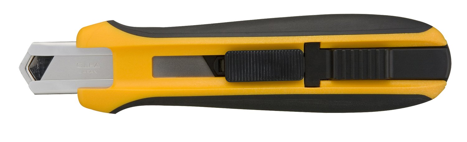 Универсальный нож OLFA UTC-1 идеально подходит для любых работ. Удобен в использовании и очень точен за счет усиленной фиберглассом рукоятки с резиновыми вставками по периметру. Выдвижной нож имеет пять положений лезвия для быстрой регулировки длины. Фиксатор с автоматической блокировкой надежно удерживает лезвие во время резки. Очистка выполняется легко благодаря стойкому к ацетону корпусу.