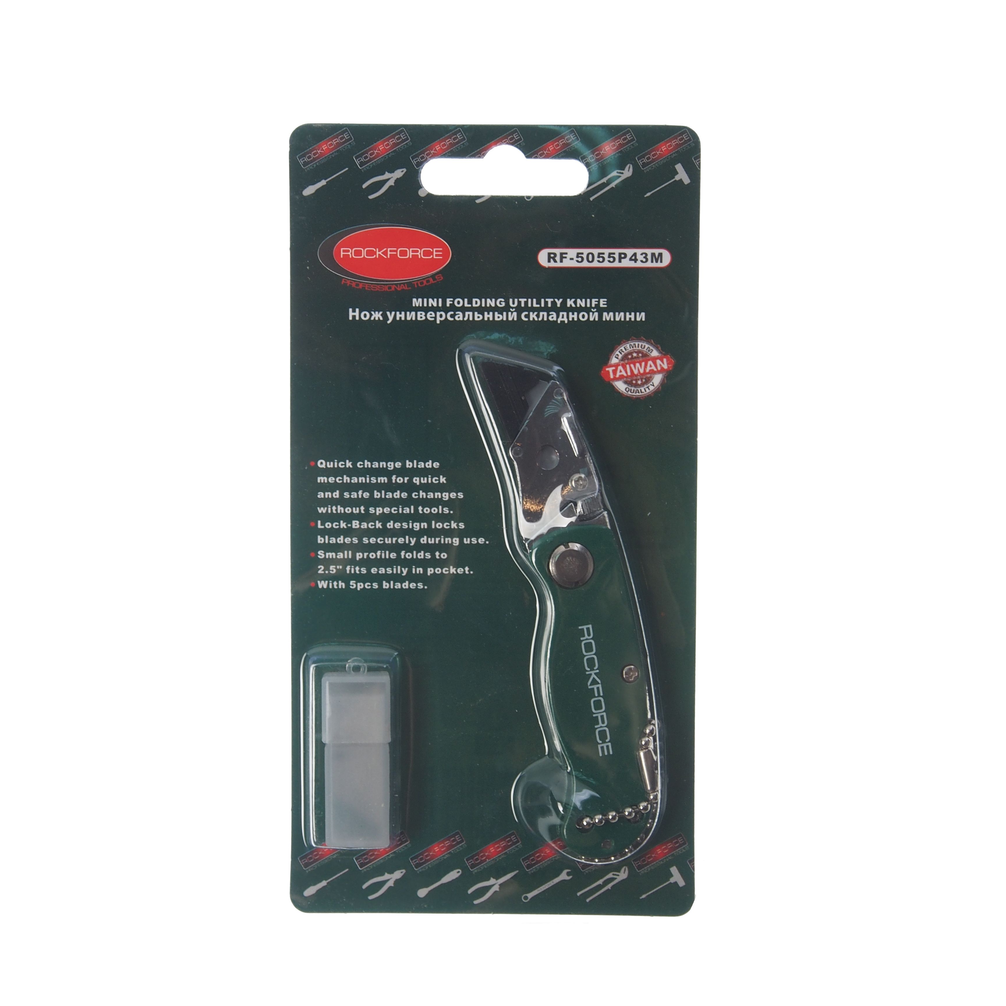 Нож RockForce универсальный складной мини со сменным лезвием, может использоваться в строительстве, ремонте, а также при электромонтажных работах. Усиленная конструкция позволяет быстро сменить лезвие, без открытия корпуса.