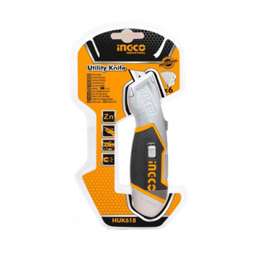 Нож с выдвижным лезвием INGCO HUK6128 - это универсальный инструмент, имеющий широкую сферу применения - с помощью него можно быстро и аккуратно разрезать такие материалы, как линолеум, картон, обои и др. Материал лезвия - углеродистая сталь SK5. Размер лезвия: 61 х 19 мм. Материал корпуса - цинковый сплав, обеспечивает приспособлению защиту от различных механических воздействий и, как следствие, гарантирует продолжительный рабочий ресурс. Есть возможность промежуточного закрепления лезвия. В комплекте 5 лезвий.