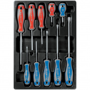 Материалы – инструментальная сталь SNCM+V (S2), хром, PP+TPR (рукояти отверток), PVC (ложемент)