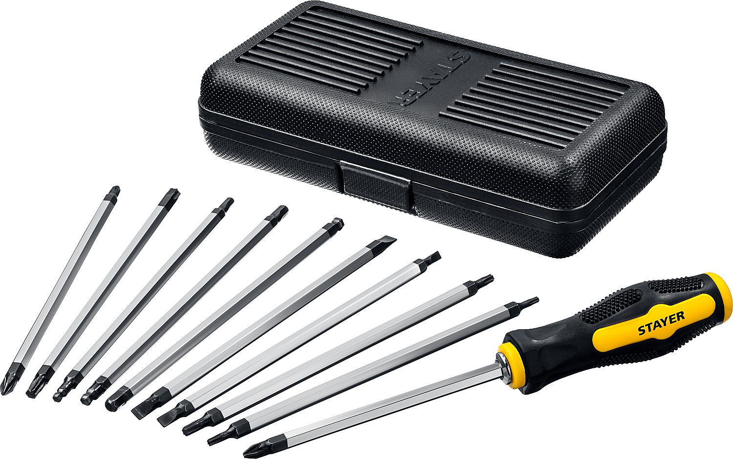 - Двухсторонние переставные стержни для разных типов шлицов