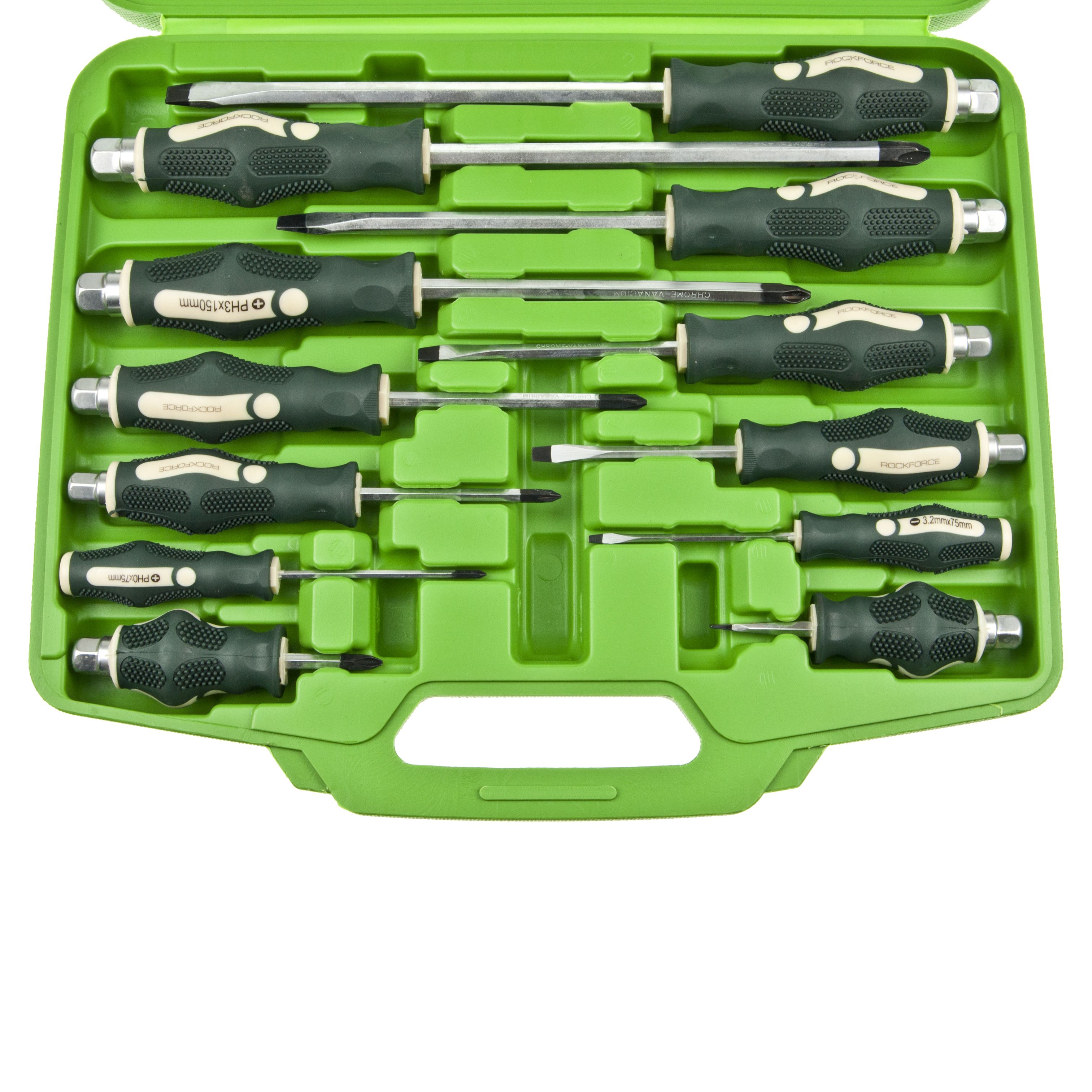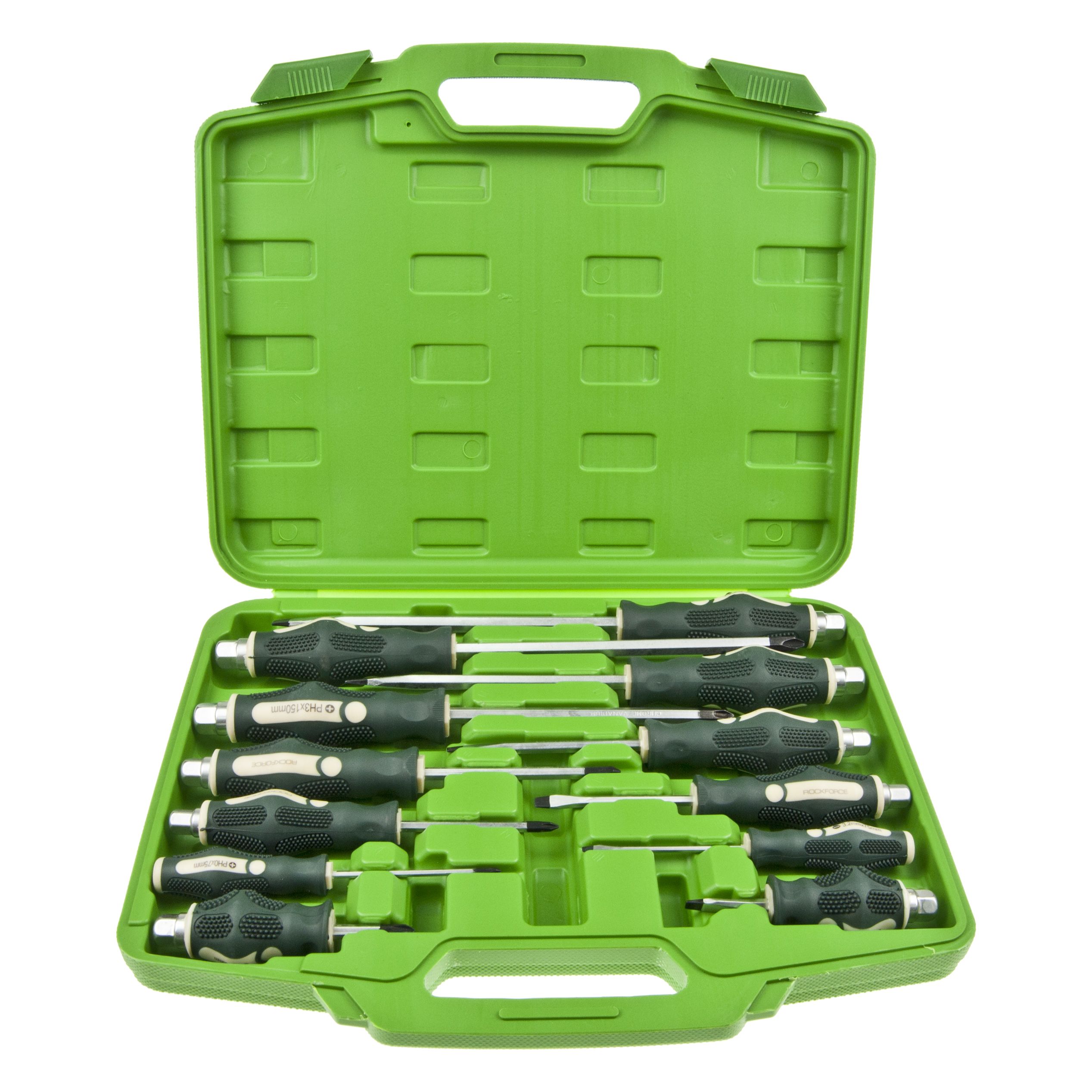 Набор отверток RockForce силовых ударных 12 предметов в наборе в кейсе В наборе охвачены наиболее часто используемые размеры, что позволяет работать с различными формами и типами крепежа. Данный набор отлично подойдет как для бытового, так и для профессионального использования. Инструмент изготовлен из прочной стали и имеет удобную рукоятку, которая обеспечит эффективность даже при длительной эксплуатации.