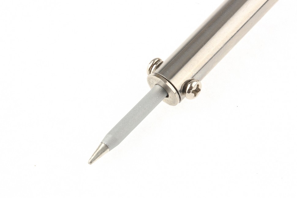 Паяльник Matrix 913044 мощностью 40 W, с корпусом из пластика ABS, индикатором и медным наконечником с долговечным гальваническим покрытием, работает от сети 220 В, имеет класс защиты 1 и используется для пайки микрочипов, транзисторов, проводки и электросхем. Поставляется с припоем в пластиковой тубе, поэтому полностью готов к работе. Конусовидное жало удобно для прецизионной пайки. Прибор пригодится радиолюбителям, автоэлектрикам, а также будет полезен в быту.ПреимуществаДолговечность — благодаря нихромовой спирали и корпусу из ударопрочного ABS-пластика паяльник устойчив к повреждениям. Удобная эксплуатация — жало с медным сердечником быстро нагревается, при необходимости его можно заменить.Эффективная работа — хромированное покрытие предохраняет жало от ржавчины и улучшает прилипание припоя.Безопасное размещение на рабочем столе — паяльник комплектуется подставкой.Индикация готовности к работе — при включении прибора в сеть срабатывает световой индикатор.Длительная работа без ощущения усталости — пластиковая рукоятка с мягкой накладкой удобно ложится в руку.Надежность — инструмент изготовлен в соответствии с требованиями ТР ТС 004/2011 «О безопасности низковольтного оборудования» и ТР ТС 020/2011 «Электромагнитная совместимость технических средств».