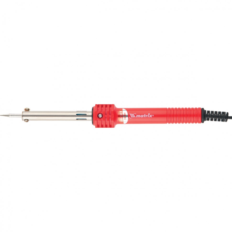 Паяльник Matrix 913003 мощностью 30 W, с пластиковой рукояткой, работающий от сети 220 В, имеет медный наконечник с долговечным гальваническим защитным покрытием, надежно защищающим его от внешних воздействий. Конусовидное жало удобно для выполнения точных работ. Благодаря нагревательному элементу в виде нихромовой спирали паяльник устойчив к повреждениям. Инструмент используется для пайки проводов, микрочипов, электрических схем и транзисторов. Будет полезен для ремонта автомобилей, электроники и бытовой техники.ПреимуществаБыстрая подготовка к работе — жало с медным сердечником быстро нагревается.Защитное покрытие — хромированная рабочая поверхность устойчива к образованию коррозии и обеспечивает хорошее прилипание припоя.Простое обслуживание — если жало выйдет из строя, его можно будет заменить.Эргономичность — рукоятка из высококачественного пластика надежно ложится в руку, снижая нагрузку на кисть во время длительной работы.Подтвержденная безопасность — инструмент изготовлен в соответствии с требованиями ТР ТС 004/2011 «О безопасности низковольтного оборудования» и ТР ТС 0020/2011 «Электромагнитная совместимость технических средств».