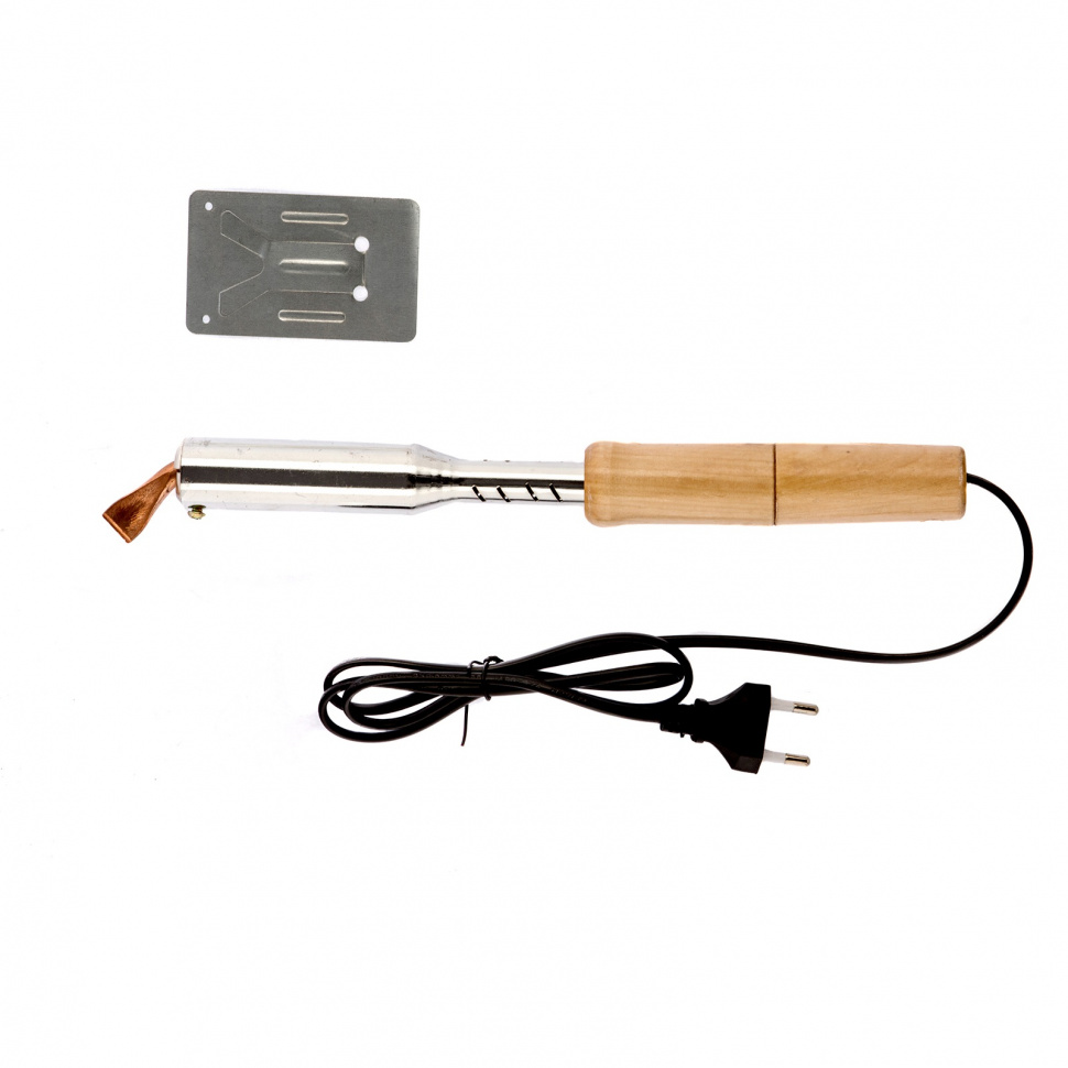 Паяльник электрика Sparta 913104, 100 Вт, 220 В, с ручкой из дерева, применяется для пайки толстых кабелей и крупных деталей. С этими задачами прибор успешно справляется благодаря жалу в форме лопатки. Наконечник съемный, поэтому при необходимости его легко заменить. Нихромовая спираль, являющаяся нагревательным элементом, устойчива к повреждениям, что обеспечивает надежность и долговечность прибора. Паяльник будет полезен для проведения электромонтажных работ.ПреимуществаМедное жало разогревается быстро и чистится легко, поэтому паяльник удобен в использовании.Деревянная рукоятка слабо нагревается и не деформируется, что продлевает срок службы инструмента.Рукоятка из древесины комфортно лежит в руке, поэтому длительное паяние не вызывает дискомфорт.Прибор комплектуется подставкой, на которой его удобно размещать во время работы.
