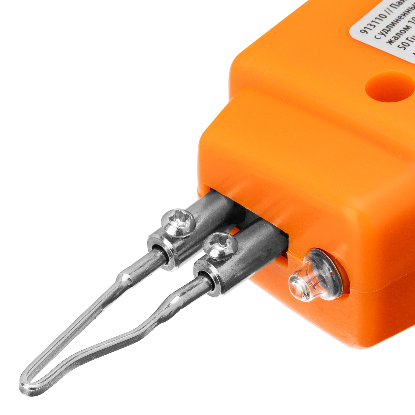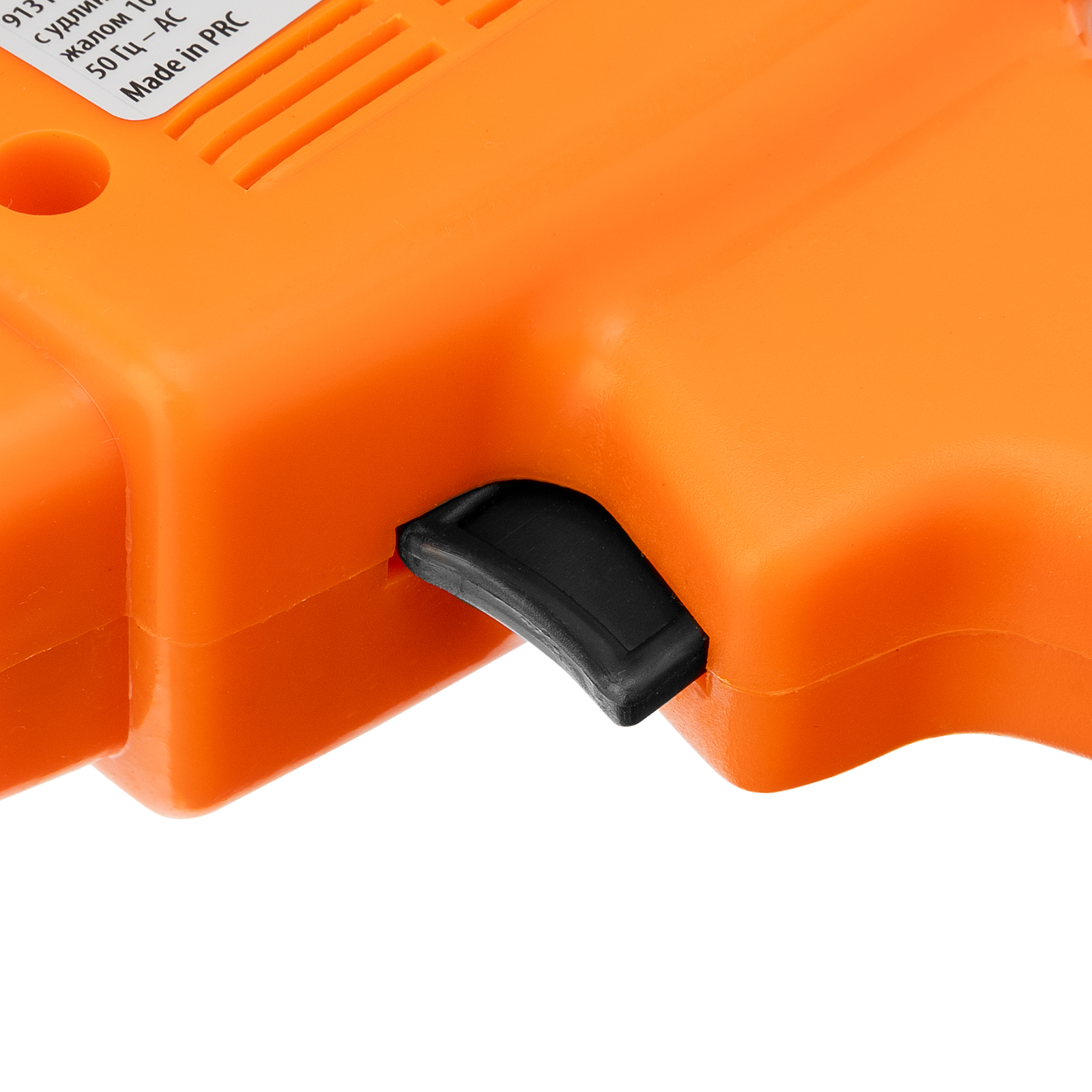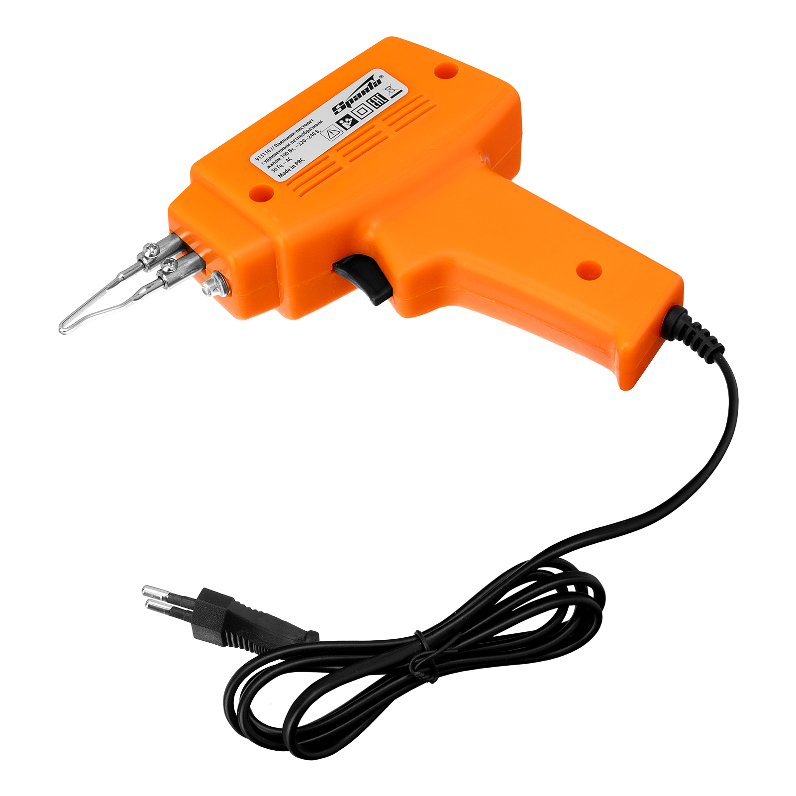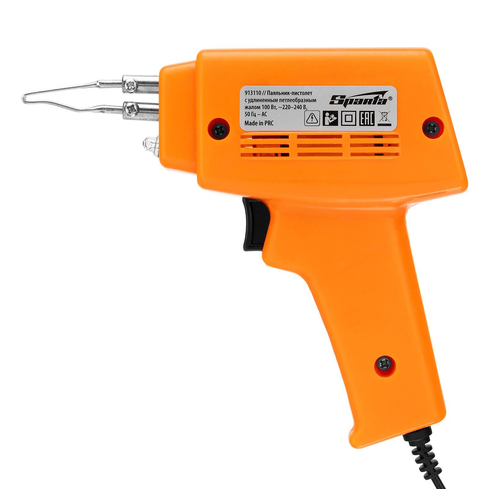 Импульсный паяльник Sparta 913110 мощностью 100 Вт, с петлеобразным жалом, работает от сети 220 В и предназначен для паяния проводов, электронных компонентов и металлических деталей. Рабочая температура составляет 400 °C, что обеспечивает высокое качество пайки. Прибор будет полезен в мастерской, дома или в гараже.ПреимуществаБыстрая подготовка к работе — жало из нихромовой проволоки разогревается до рабочей температуры за 3 минуты.Удобная пайка в труднодоступных местах и в условиях недостаточного освещения — паяльник оборудован лампочкой подсветки.Эргономичность — удобная рукоятка в форме пистолета позволяет долго работать без ощущения усталости.