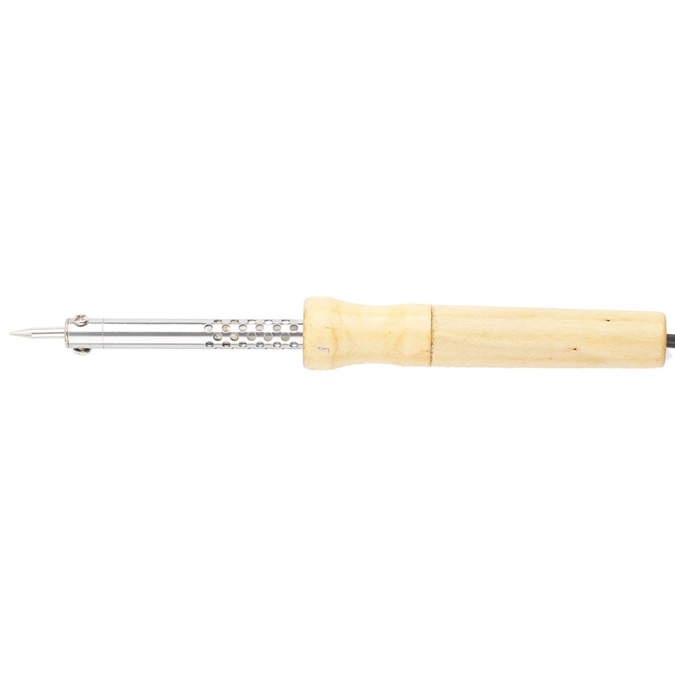 Паяльник Sparta 913135 мощностью 40 Вт, с деревянной ручкой, работает от сети 220 В и используется для пайки проводки и электронных компонентов. Керамический нагревательный элемент обеспечивает длительную работу без отключения прибора для охлаждения. Паяльник будет полезен во время электромонтажных работ.ПреимуществаКонусовидное жало обеспечивает высокую точность пайки.Деревянная рукоятка покрыта термостойким лаком, поэтому не рассыхается и не деформируется в ходе эксплуатации.Рукоятка удобно лежит в руке, что повышает комфорт во время работы.