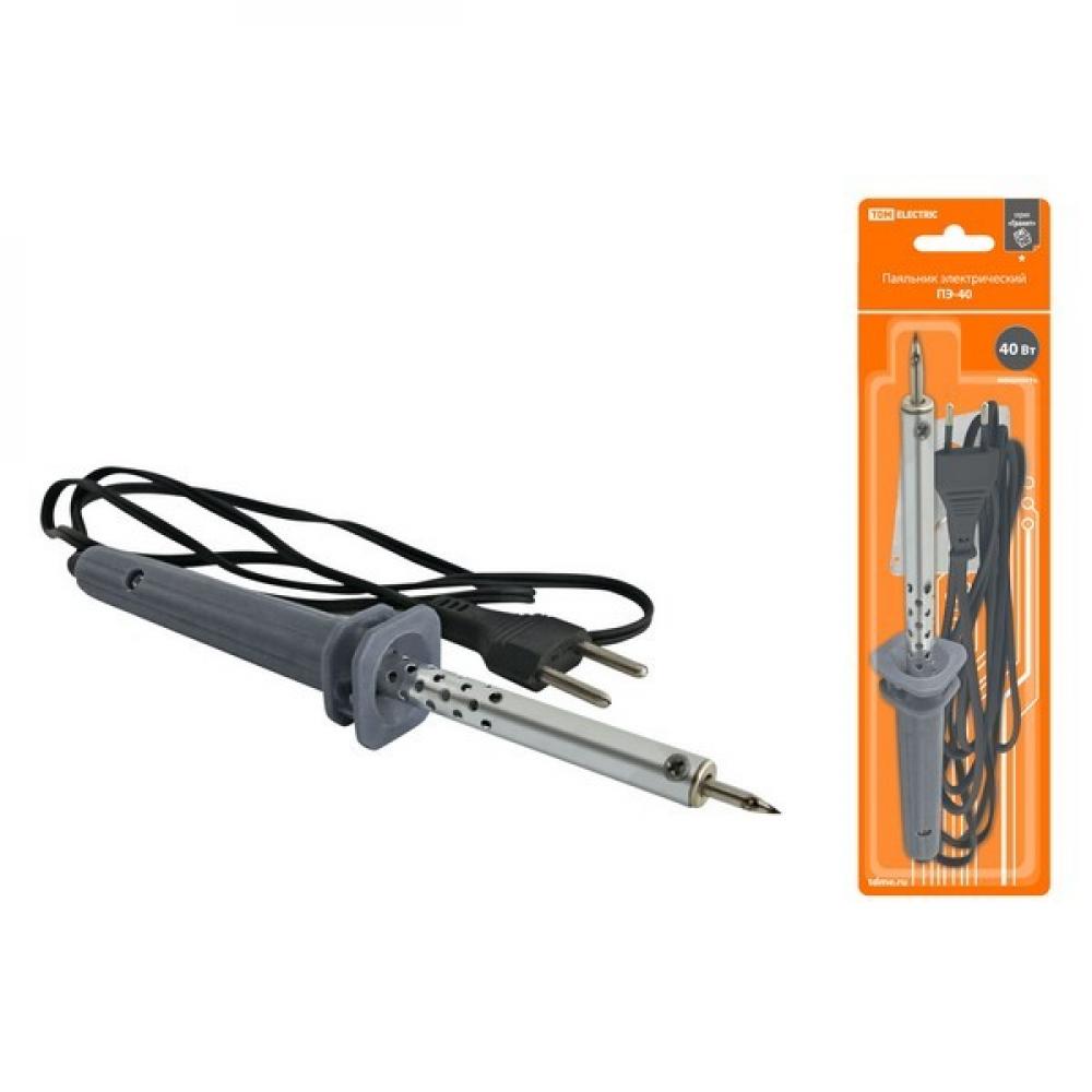 Паяльник электрический ПЭ-40 с жалом типа "конус", в комплекте подставка, 40 Вт, "Гранит" TDM