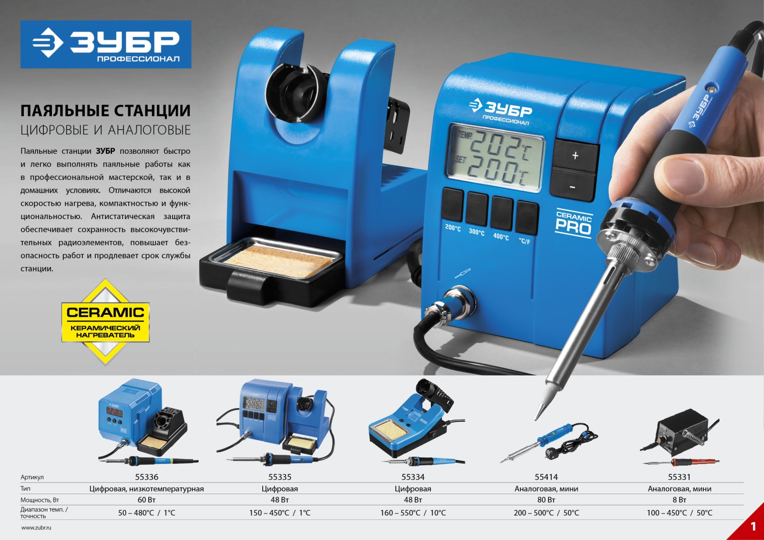 Благодаря продуманной системе управления, паяльные станции ЗУБР позволяют быстро илегко выполнять работы любой сложности, как в профессиональной мастерской, так и в домашних условиях. Антистатическая защита обеспечивает сохранность высокочувствительных радиоэлементов, значительно повышает безопасность работ ипродлевает срок службы оборудования. Предназначены для работы с электронными платами при монтаже/демонтаже компонентов, а также для пайки проводников, отпайки илужения.
