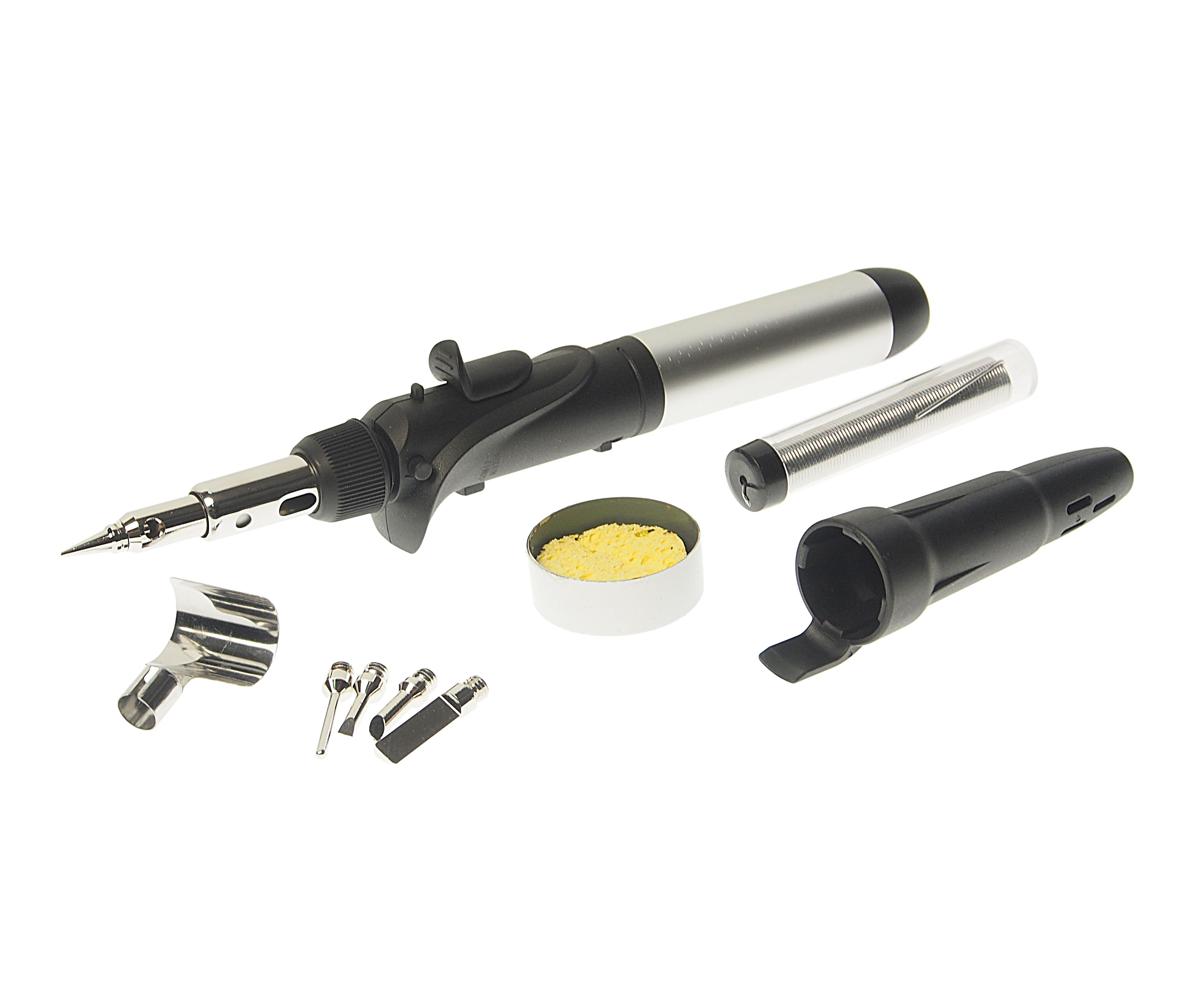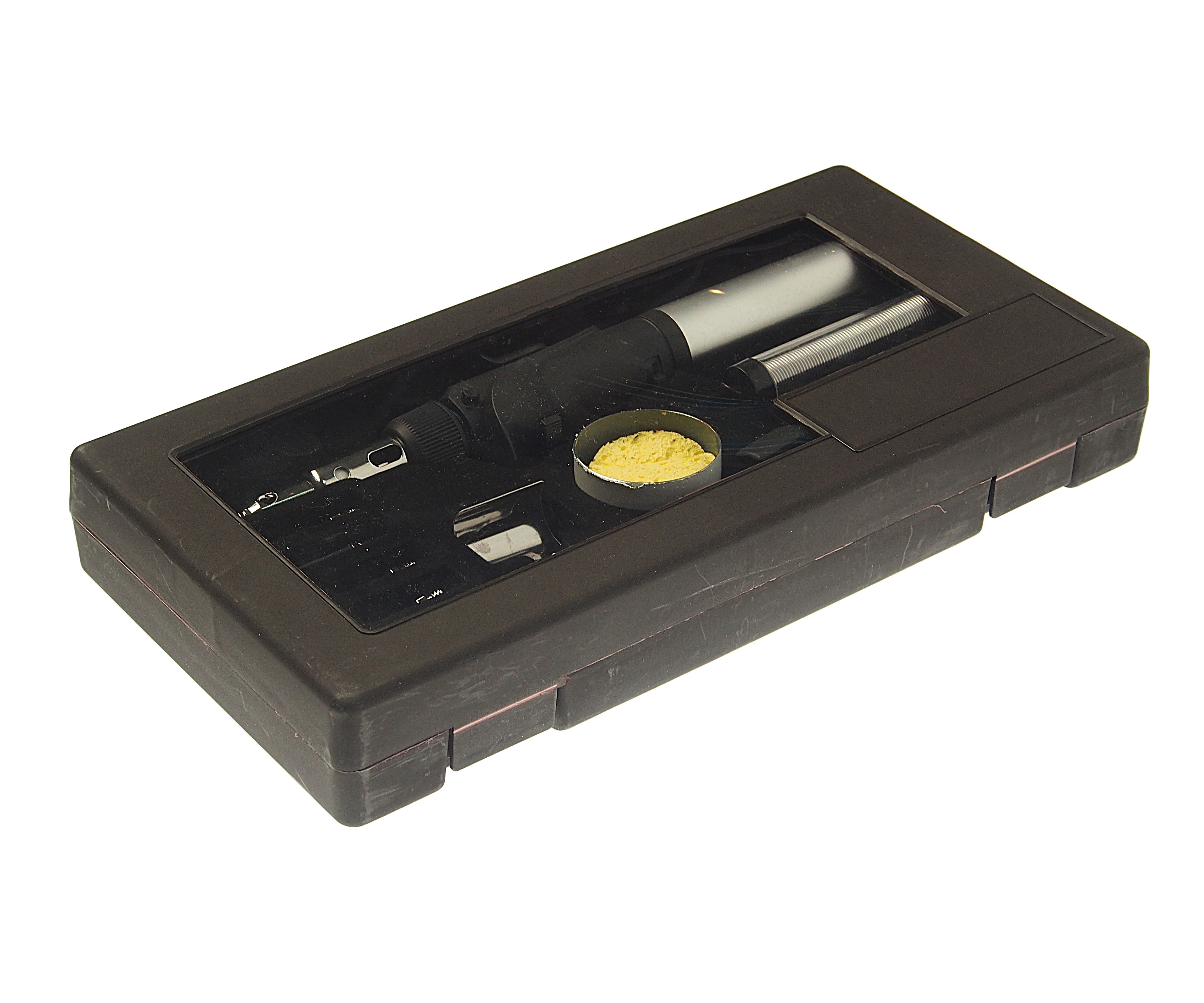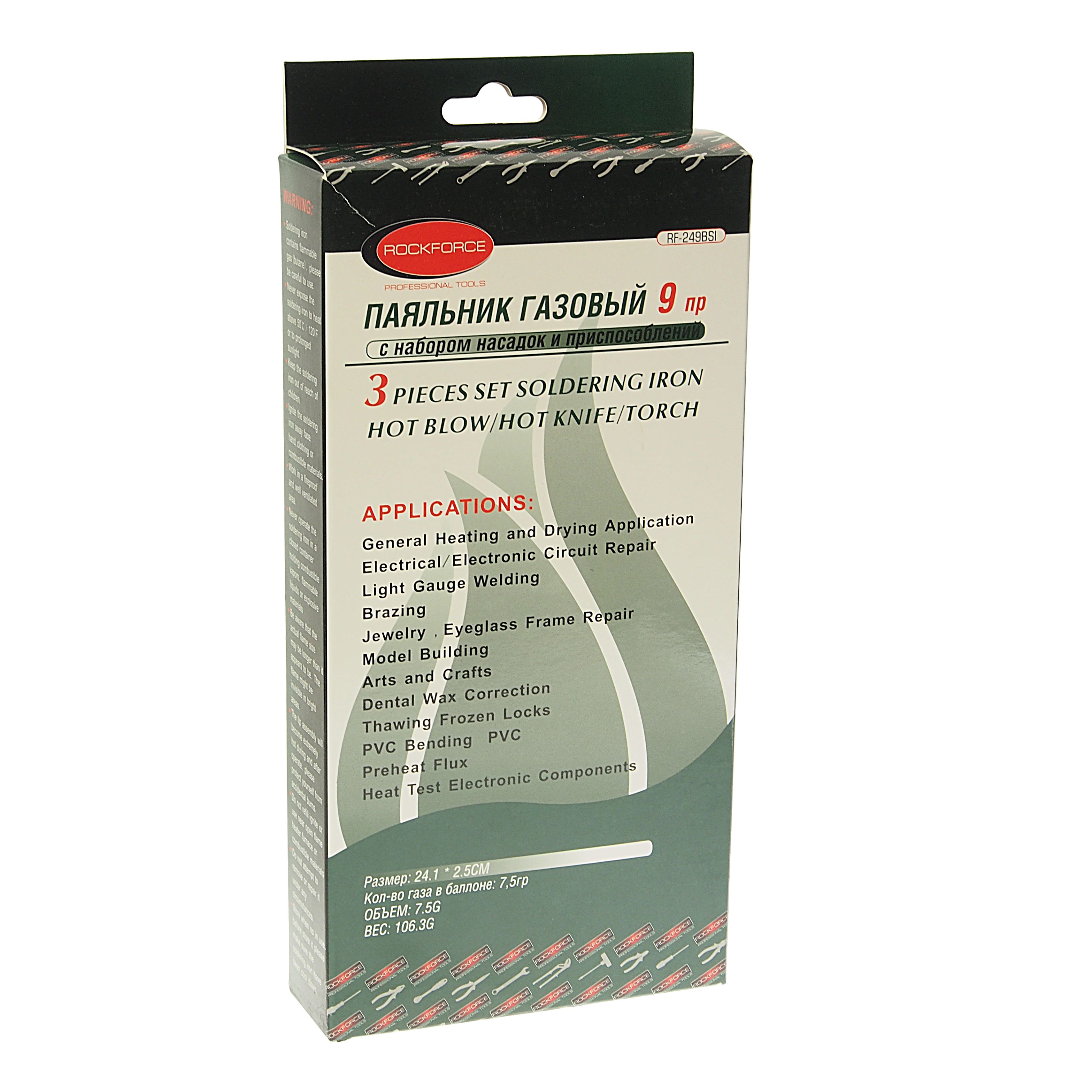 Паяльник RockForce газовый в наборе с насадками и приспособлениями 9 предметов в наборе, в кейсе Оснащена регулятором пламени и кнопкой подачи воздуха. Конструкция лампы отличается эргономичной формой. Корпус выполнен из легкого и надежного материала. Использование клапанного баллона позволяет отсоединять лампу для безопасности при транспортировке и хранении.