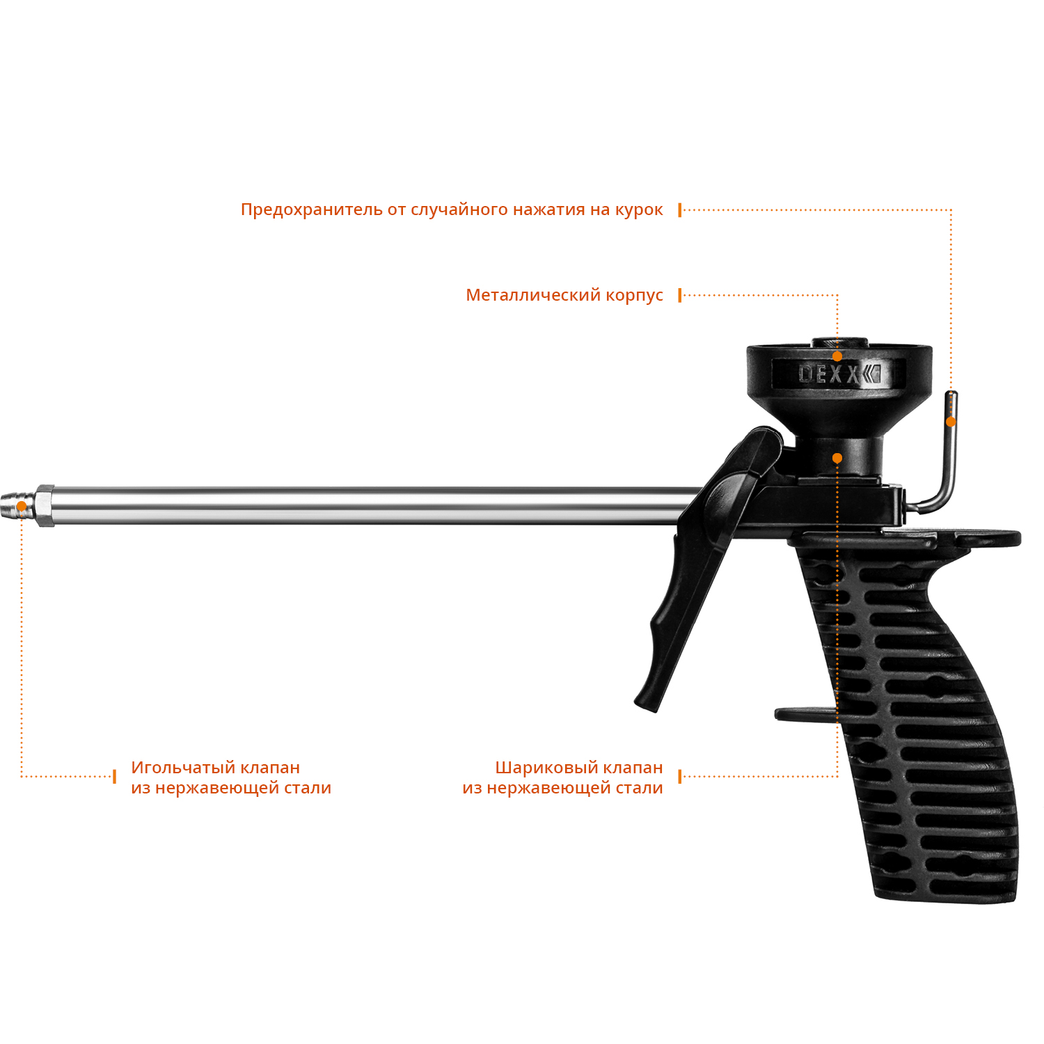 Применяется для нанесения полиуретановой пены, упакованной в баллоны, при выполнении монтажно-строительных работ.