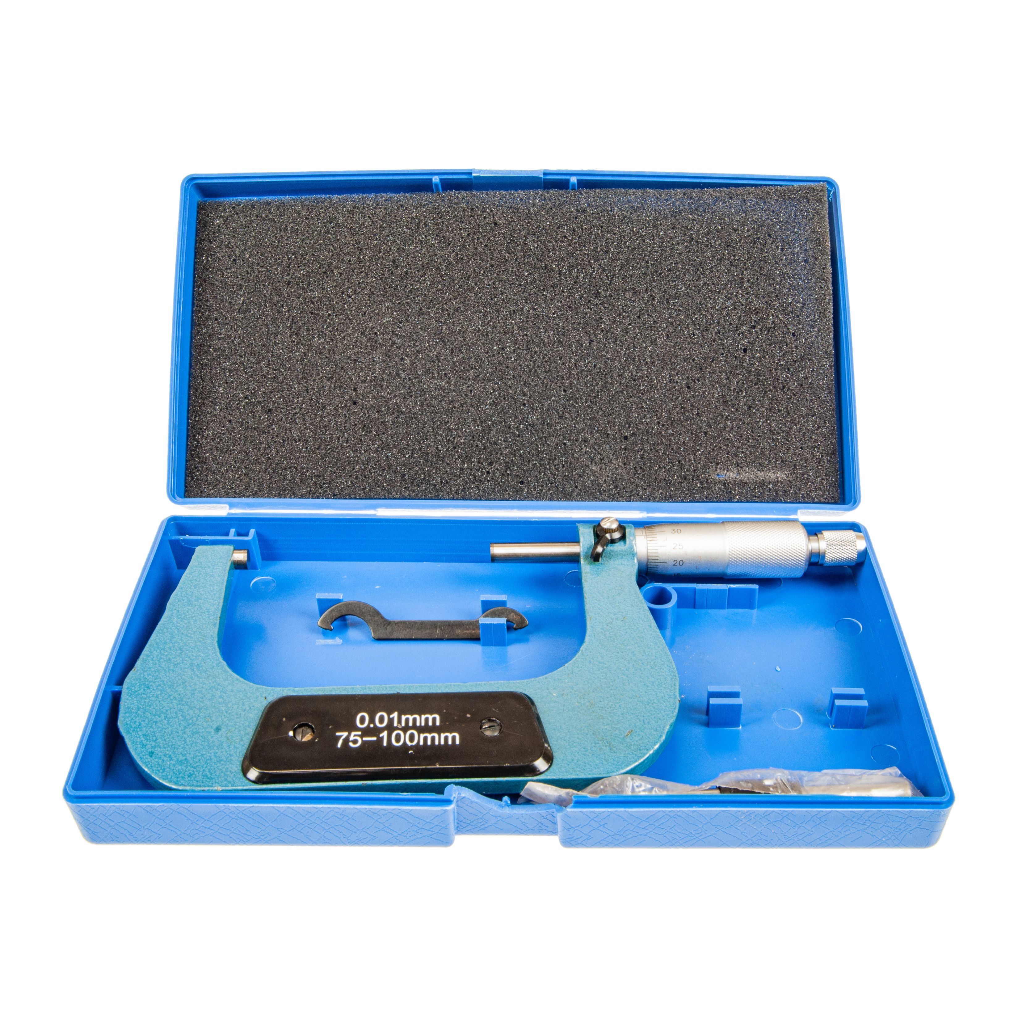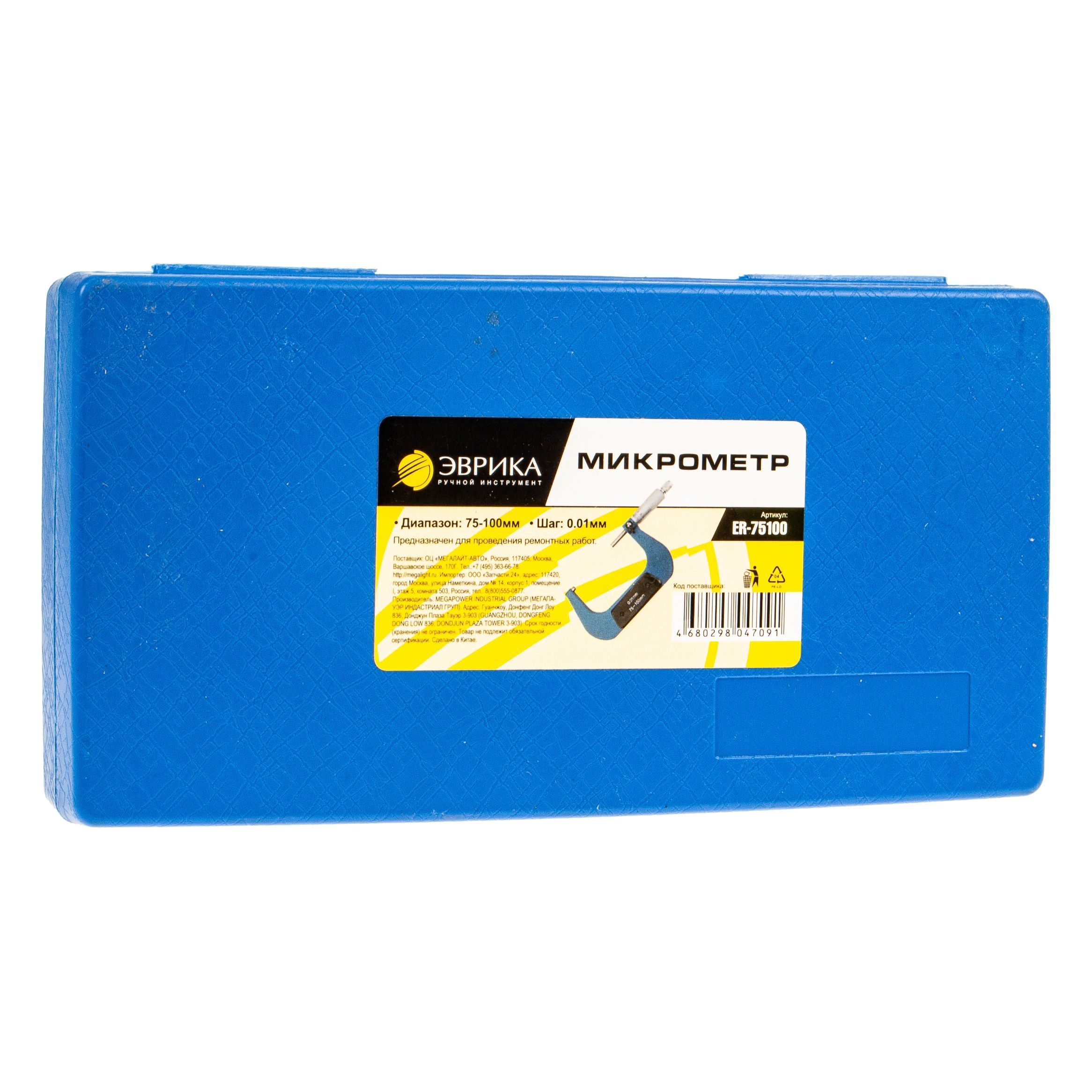 Микрометр ER-75100(75-100мм, 0.01мм), в футляре ЭВРИКА обладает прочной рамой и удобным трещоточным механизмом с рифленой поверхностью.