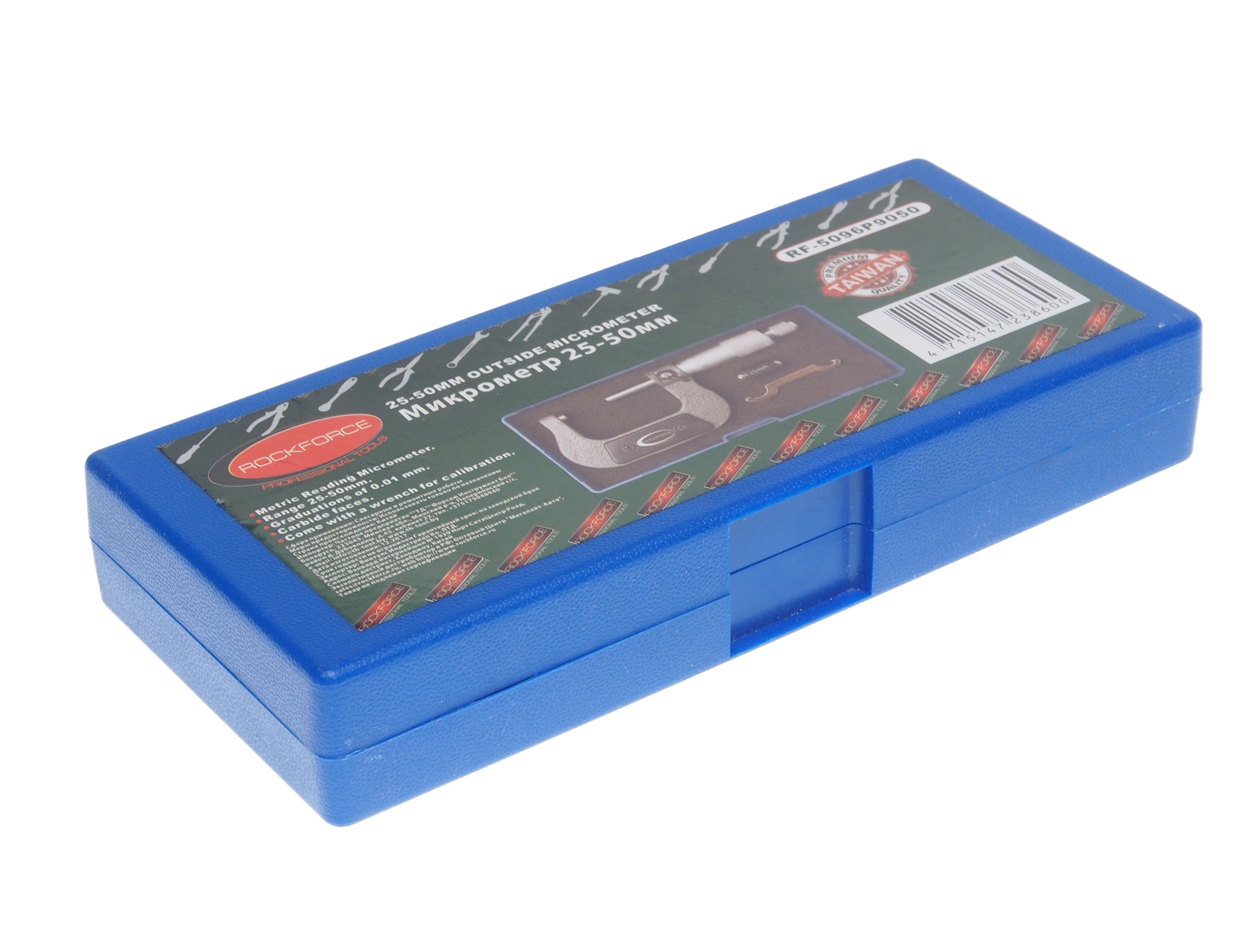 Микрометр RockForce (25-50мм, 0.01мм), в футляре измерительный инструмент, предназначенный для определения линейных размеров деталей. Модель применяют при обработке различных деталей, при сборке механизмов или же при регулировке различного промышленного оборудования.