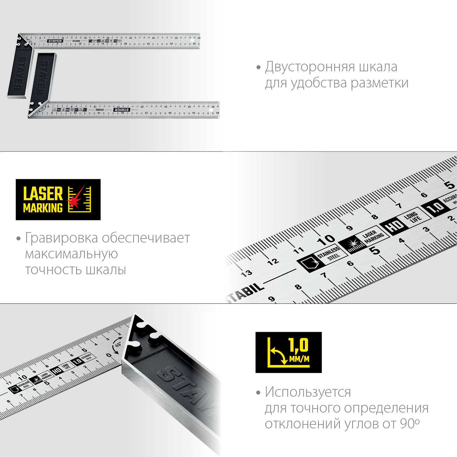 - Гравировка обеспечивает максимальную точность шкалы.