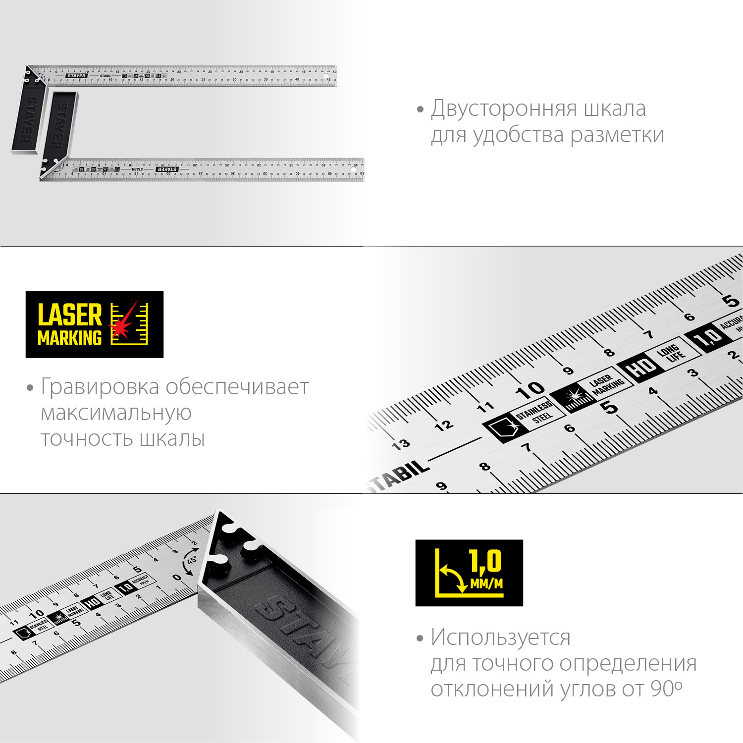 - Гравировка обеспечивает максимальную точность шкалы.