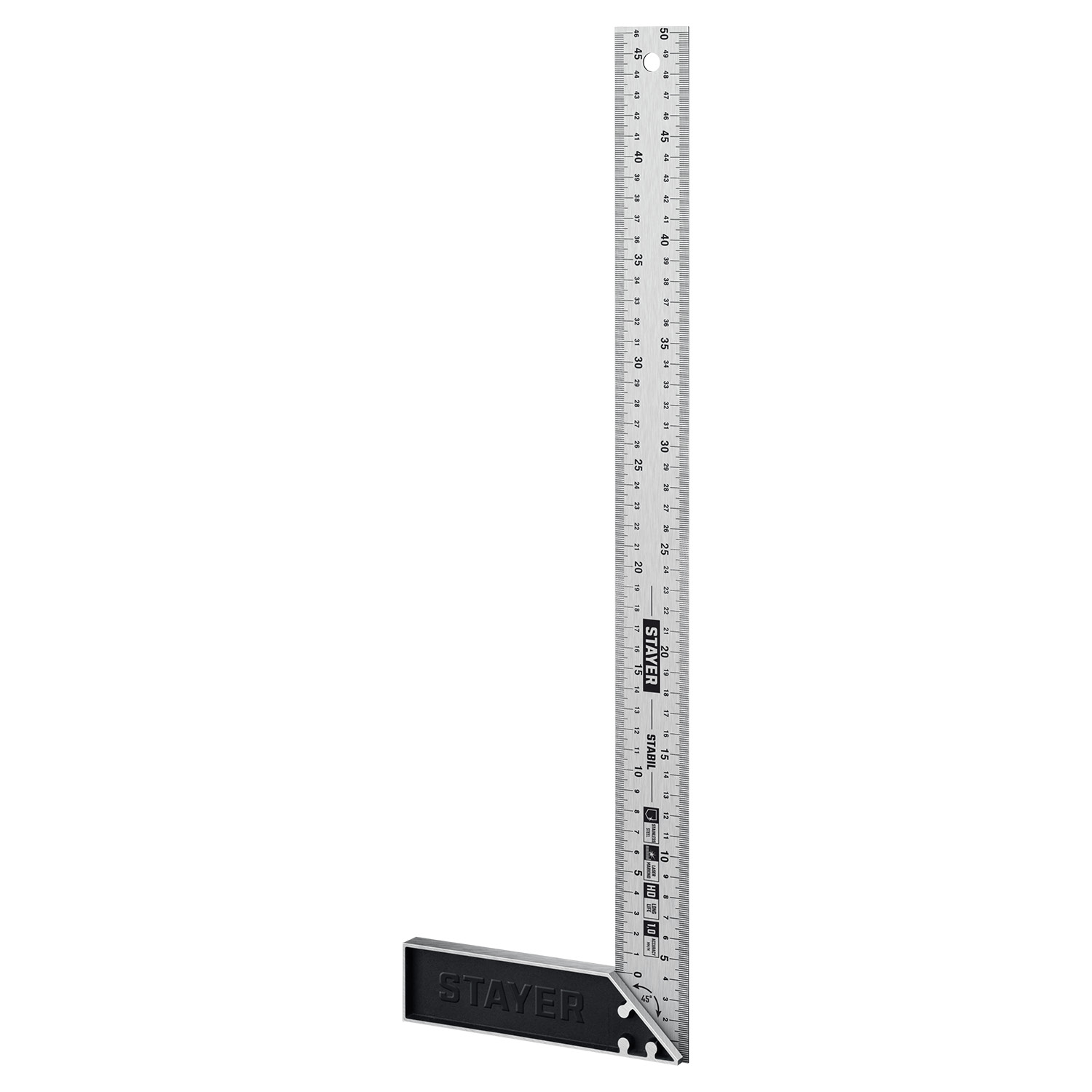 - Стойкое к появлению ржавчины полотно обеспечивает лёгкую читаемость шкалы.