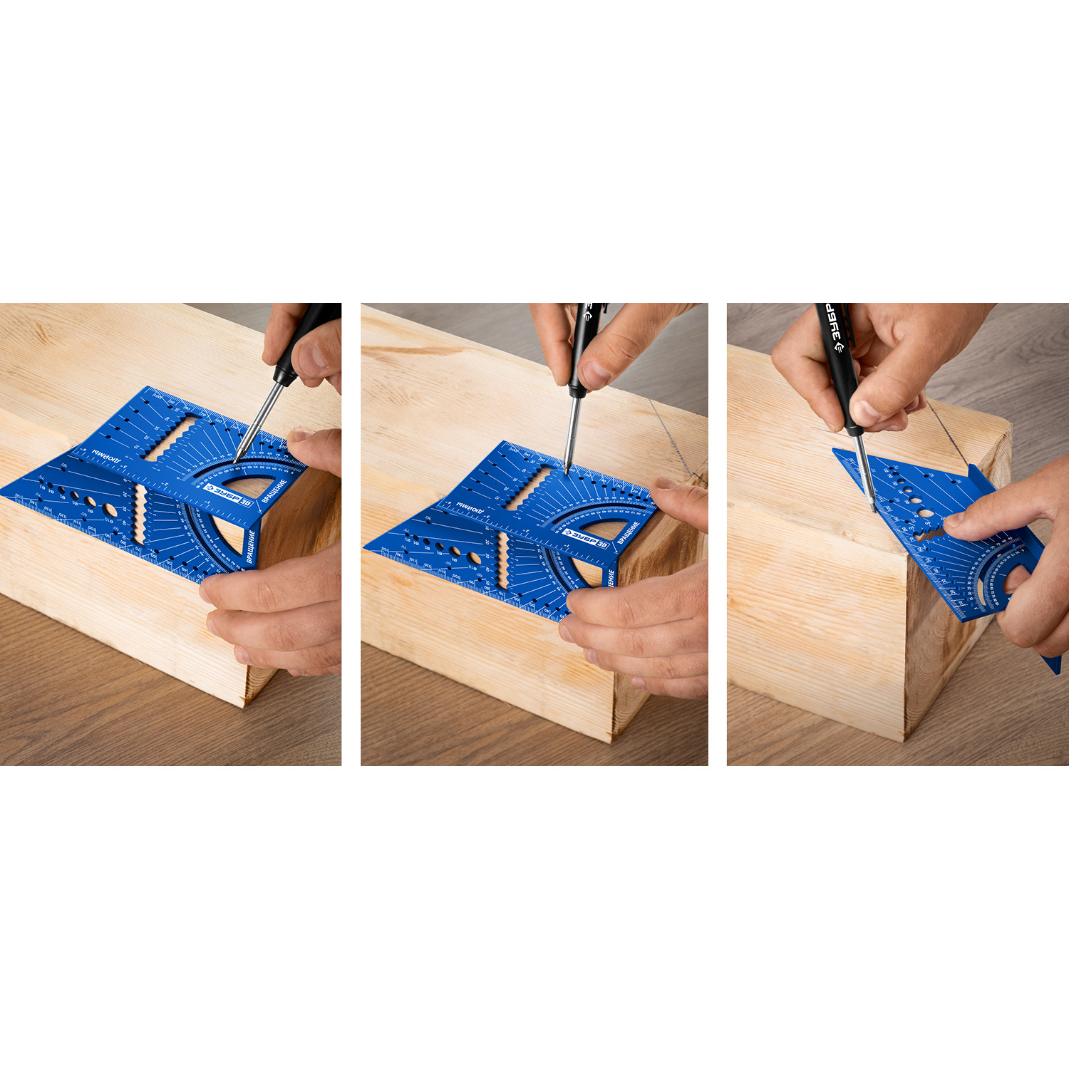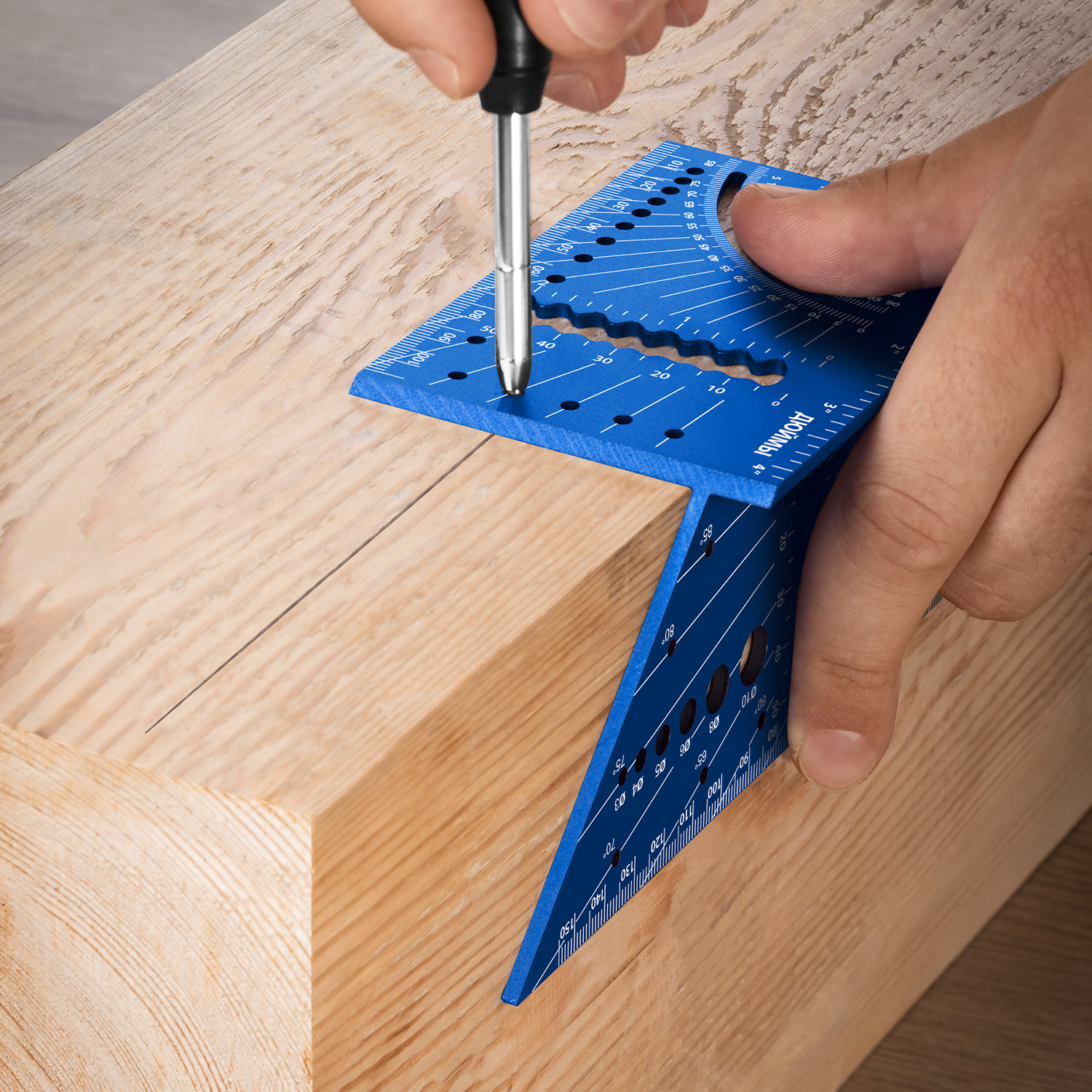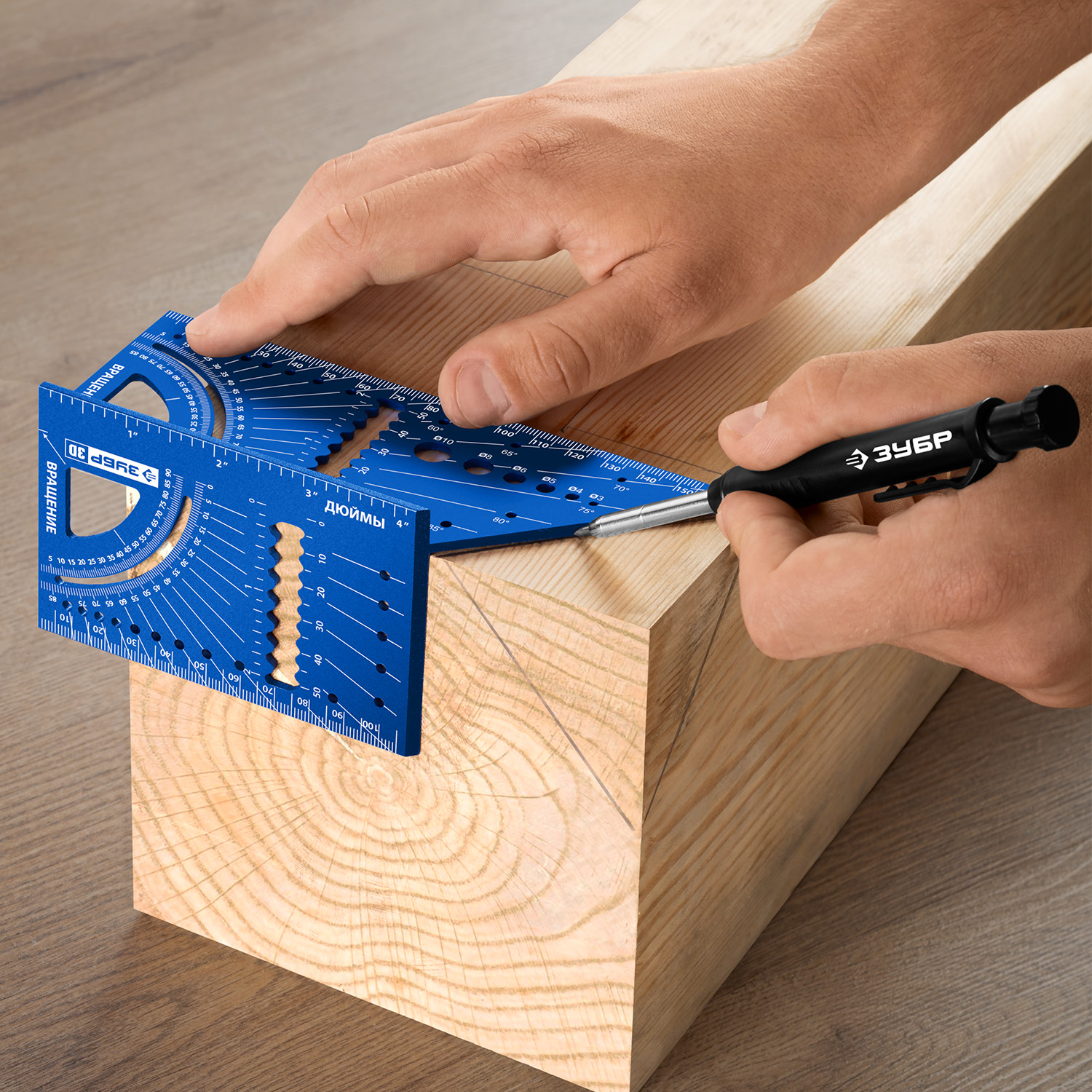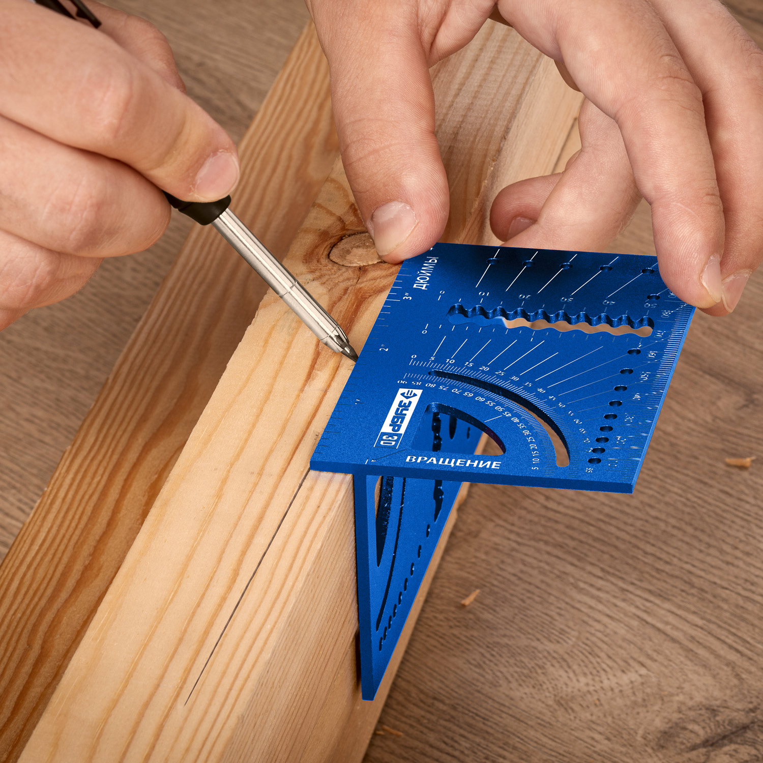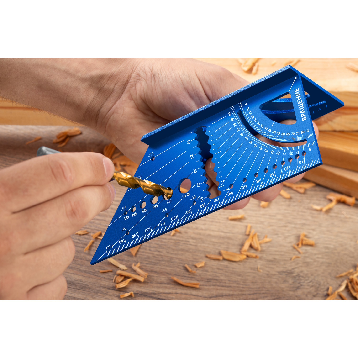 Профессиональный универсальный кровельный угольник инструмент для точной разметки объёмных конструкций, таких кк трубы, балки, направляющие. Имеет широкую область применения: разметка под углом 90 градусов, разметка под углом 45 градусов, разметка труб, рейсмус, транспортир, линейная разметка, определение размера сверла.