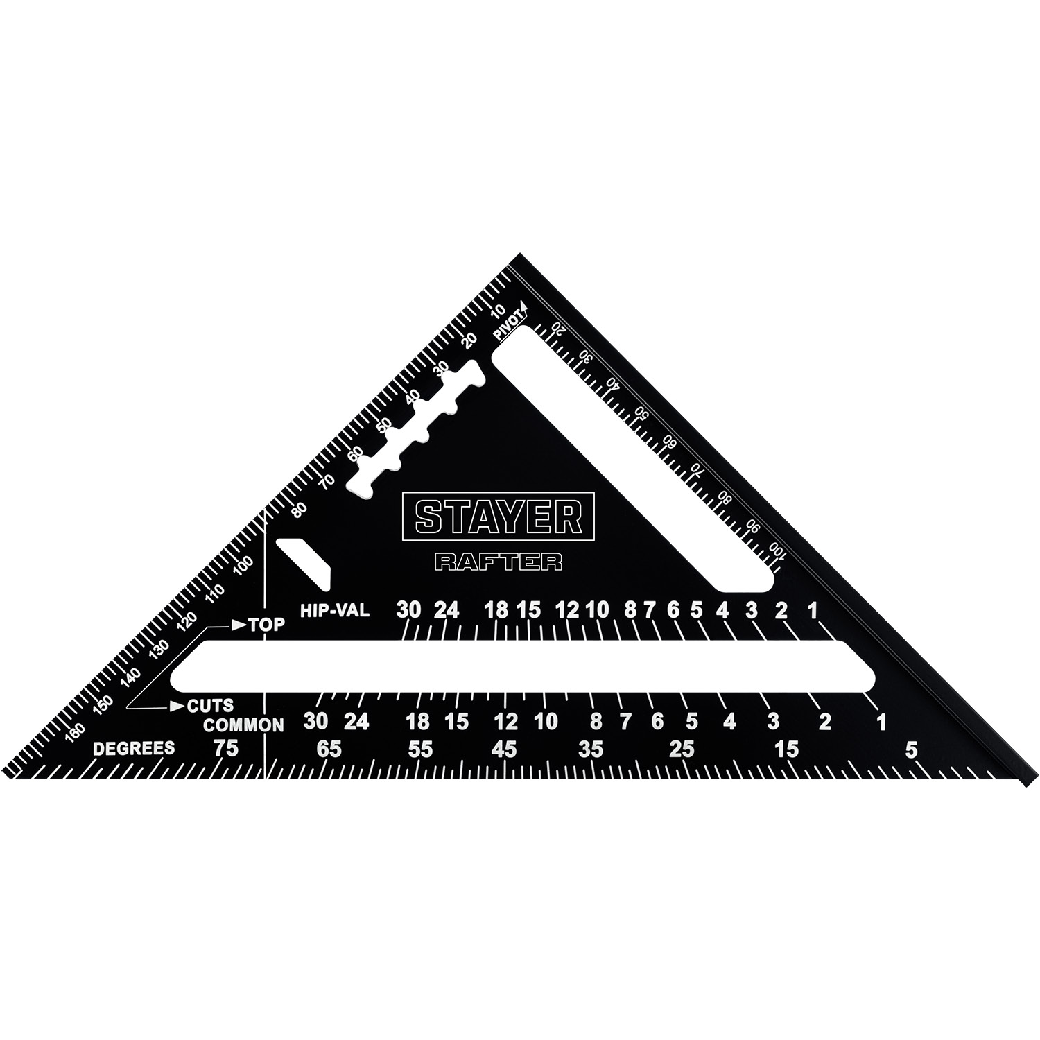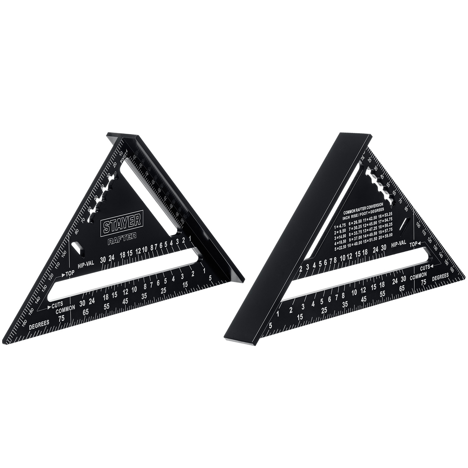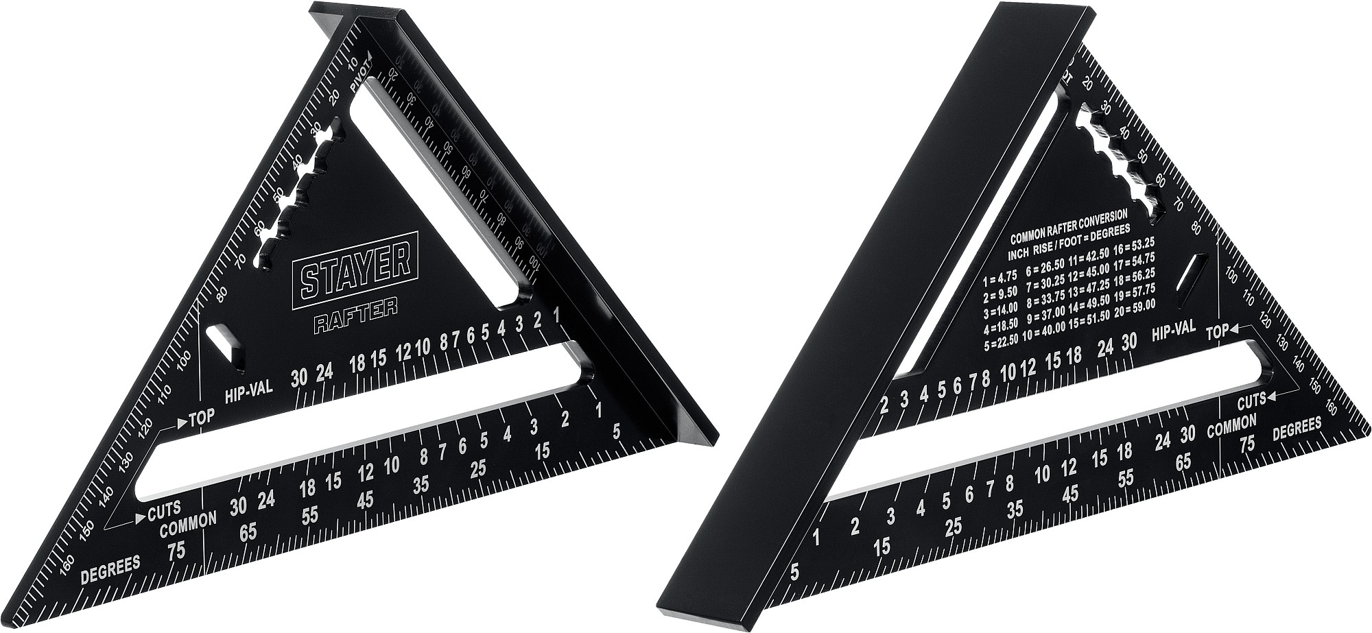 Универсальный кровельный угольник - инструмент для разметочных работ . Может применяться в качестве торцовочного угольника, транспортира, рейсмуса и направляющей для пилы.