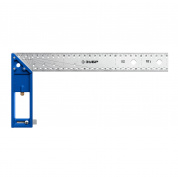 Усиленный профессиональный угольник-рейсмус с выдвижным упором. Используется для, проведения разметочных и замерочных работ. Отверстия в полотне позволяют размечать как паралельные линии с шагом 5 мм, так и дополнительные углы от 10 до 80 градусов.