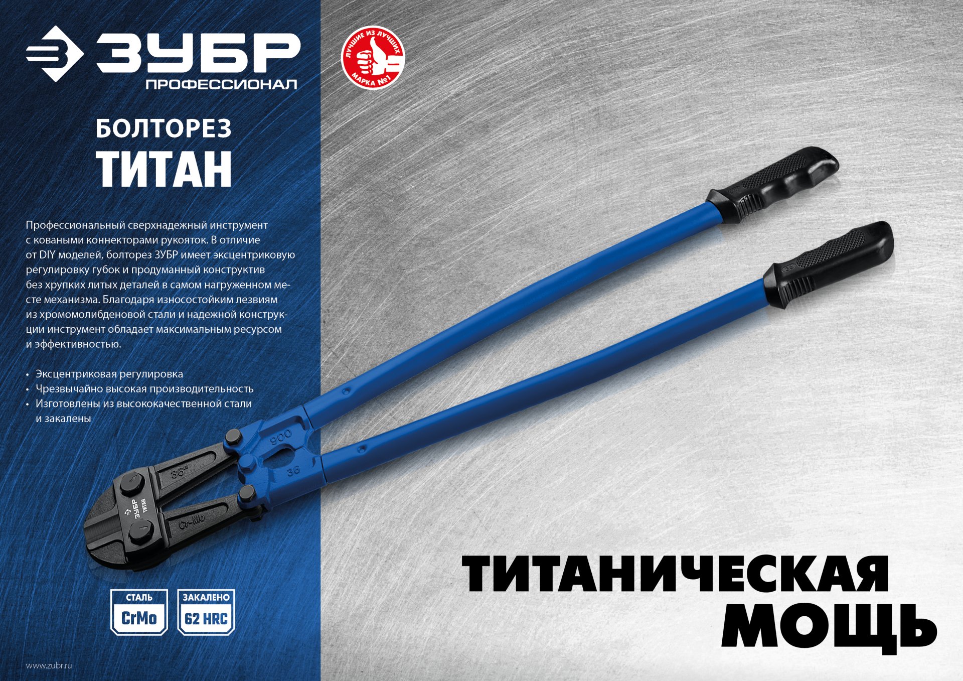 Профессиональный сверхнадежный инструмент с коваными коннекторами рукояток. В отличие от DIY моделей, болторез ЗУБР имеет эксцентриковую регулировку губок и продуманный конструктив без хрупких литых деталей в самом нагруженном месте механизма. Благодаря износостойким лезвиям из хромомолибденовой стали и надежной конструкции инструмент обладает максимальным ресурсом и эффективностью.