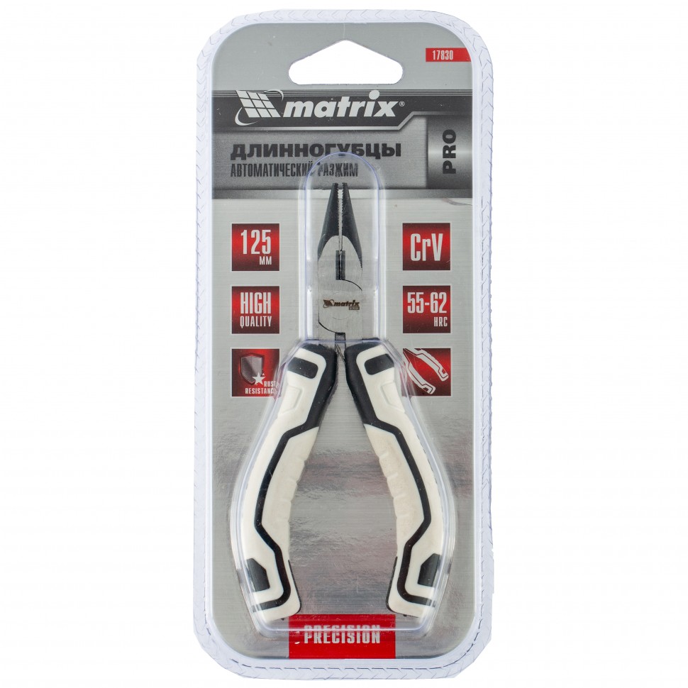 Прямые длинногубцы Matrix PRO Mini 17830 длиной 125 мм, с авторазжимом, пригодятся во время монтажных/демонтажных и ремонтных работ, например, починки бытовой техники. С их помощью удобно захватывать и удерживать мелкие детали, проволоку и провода. Мини-длинногубцы позволяют выполнять операции, требующие высокой точности и аккуратности.ПреимуществаПрочность и износостойкость — зажимные губки и режущие кромки обладают необходимой твердостью.Защита от разрушения — никелированные рабочие части устойчивы к образованию коррозии.Авторазжим — длинногубцы можно удерживать одной рукой, что экономит силы и время мастера.Комфортная работа — двухкомпонентные рукоятки с антискользящими вставками обеспечивают надежный хват.