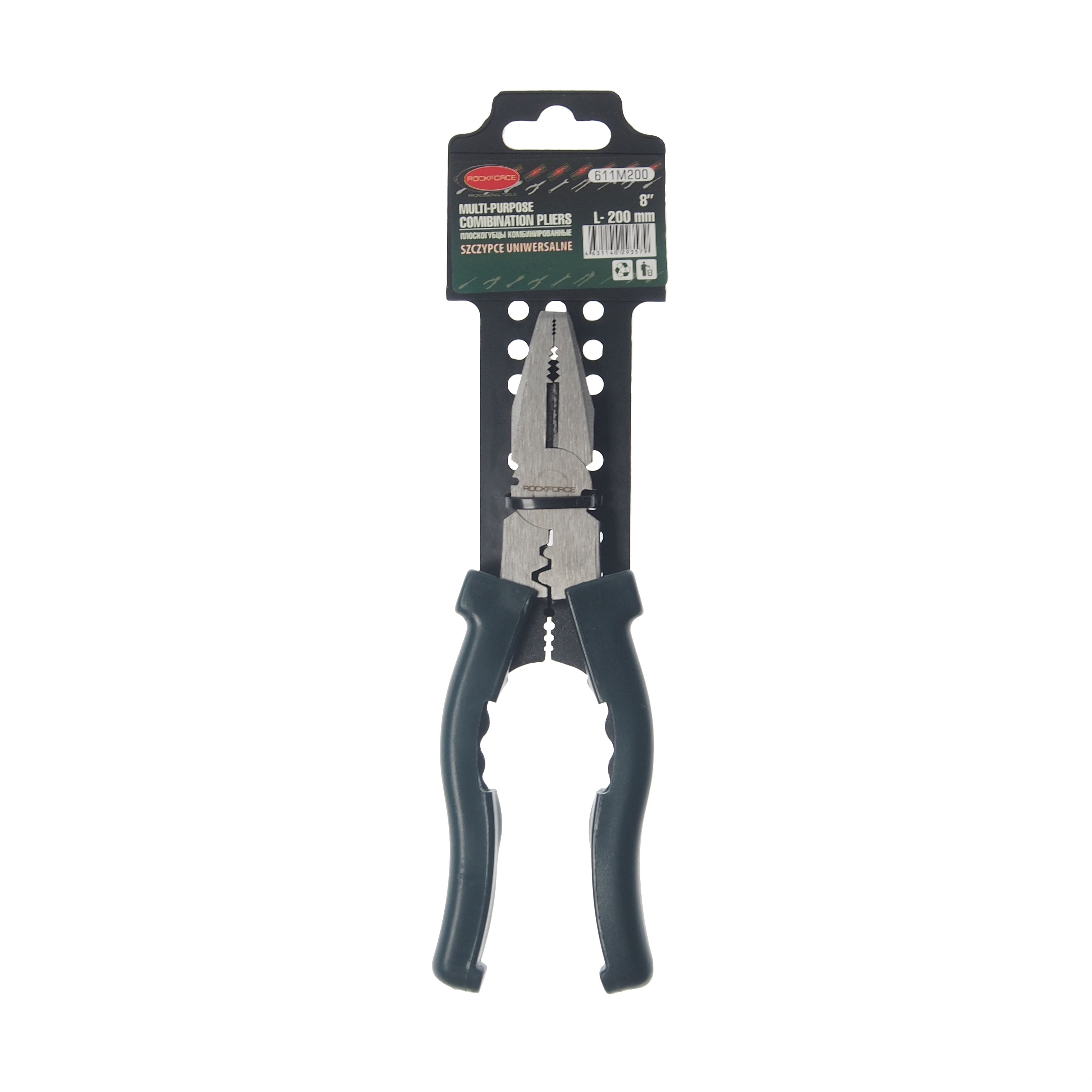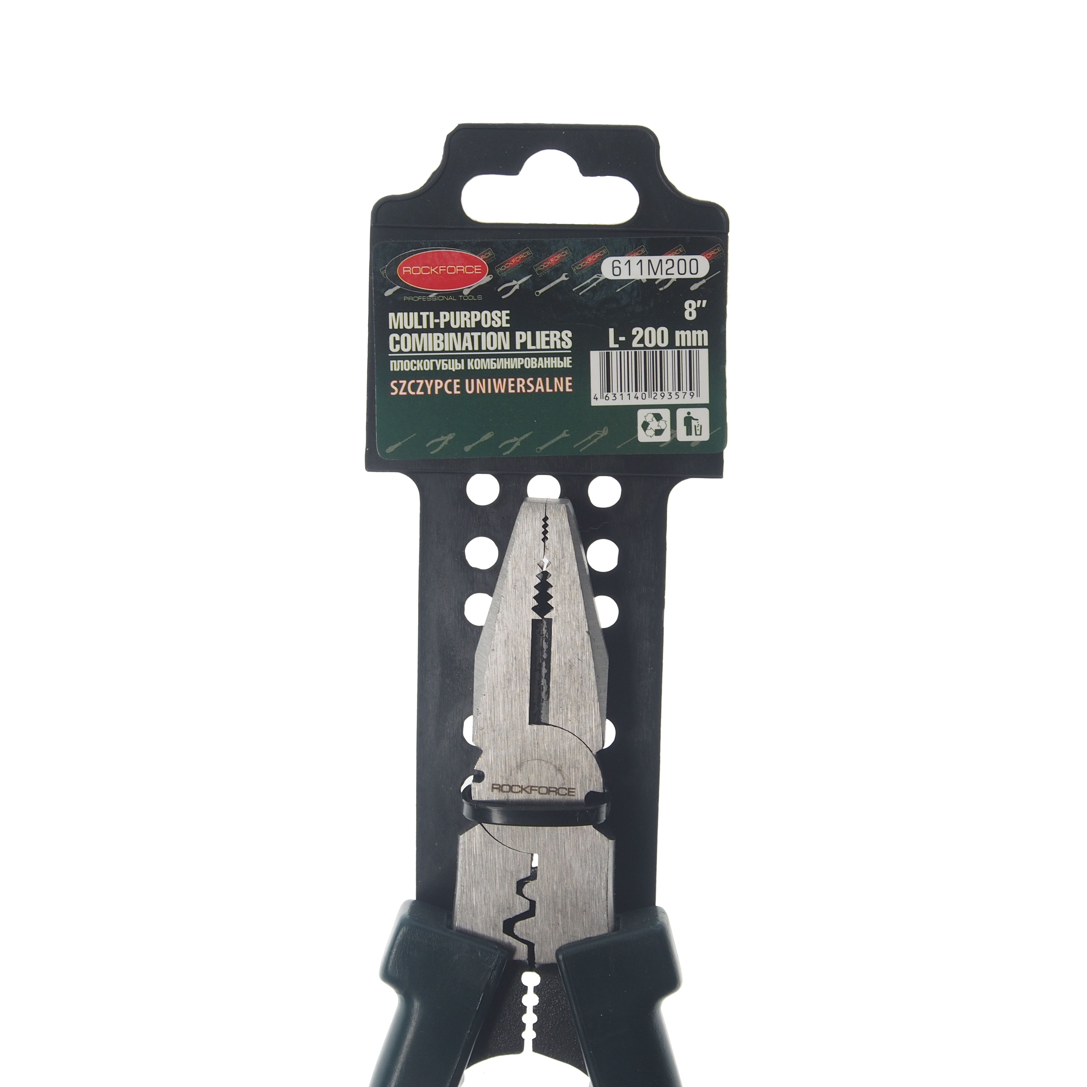 Плоскогубцы RockForce многофункциональные Cr-V 8"-200мм, на пластиковом держателе изделия, обеспечивающие мощное сжатие. Двухкомпонентные рукоятки обеспечивают комфортную работу с инструментом. Зубцы закалены и имеют дополнительное покрытие, которое обеспечивает устойчивость к коррозии и продлевает срок службы.