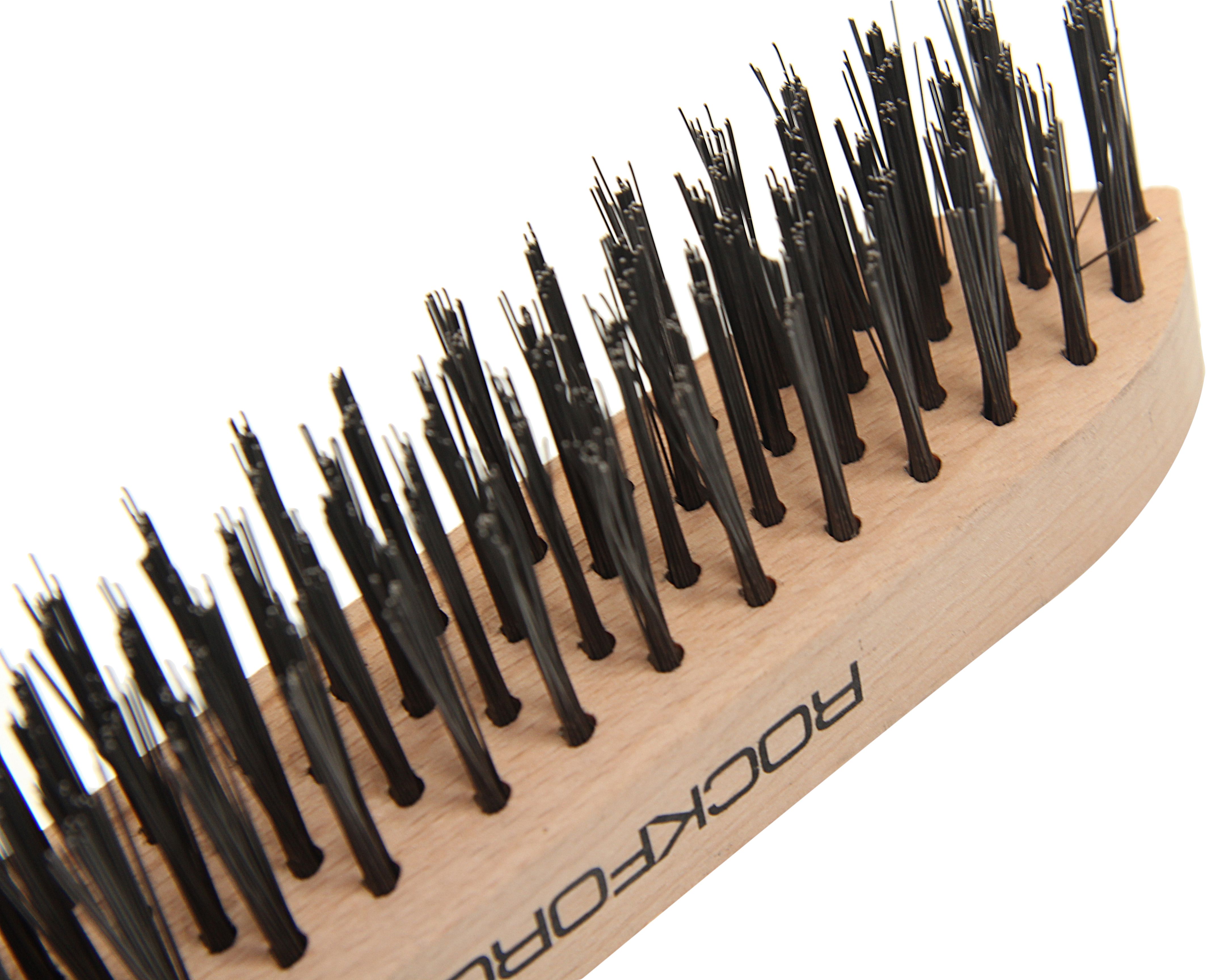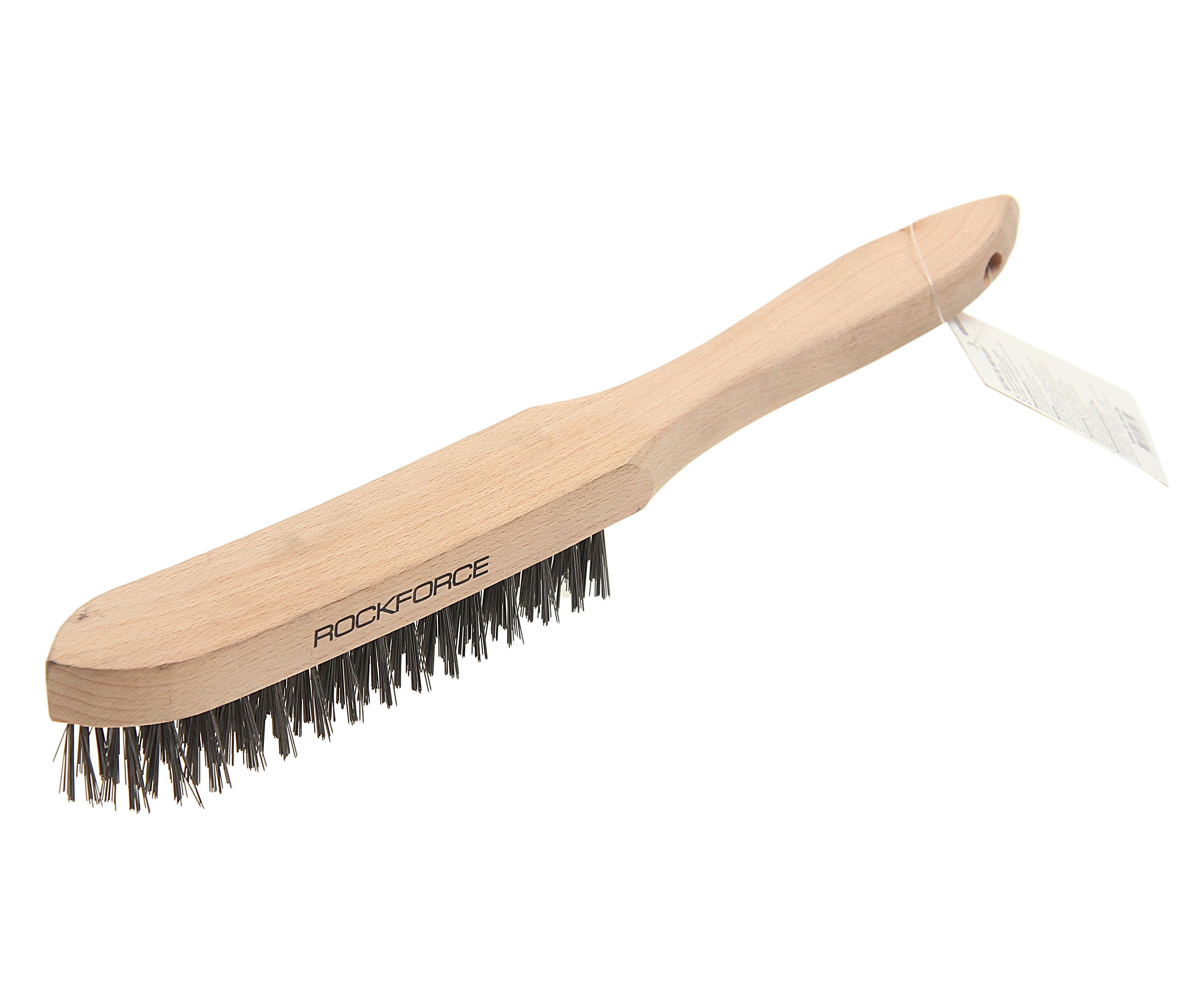 Щетка по металлу RockForce ручная в усиленном деревянном корпусе (проволока из нержавеющей стали, 4×15рядов) изделие сочетающие в себе стальные щетины, с дополнительным покрытием. Применяются при очистке металлических поверхностей от старой краски, грязи и ржавчины.