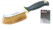Щетка по металлу RockForce ручная в железном корпусе с поли прорезиненной эргономической рукояткой (латунная проволока) изделие сочетающие в себе стальные щетины, с дополнительным покрытием. Применяются при очистке металлических поверхностей от старой краски, грязи и ржавчины.