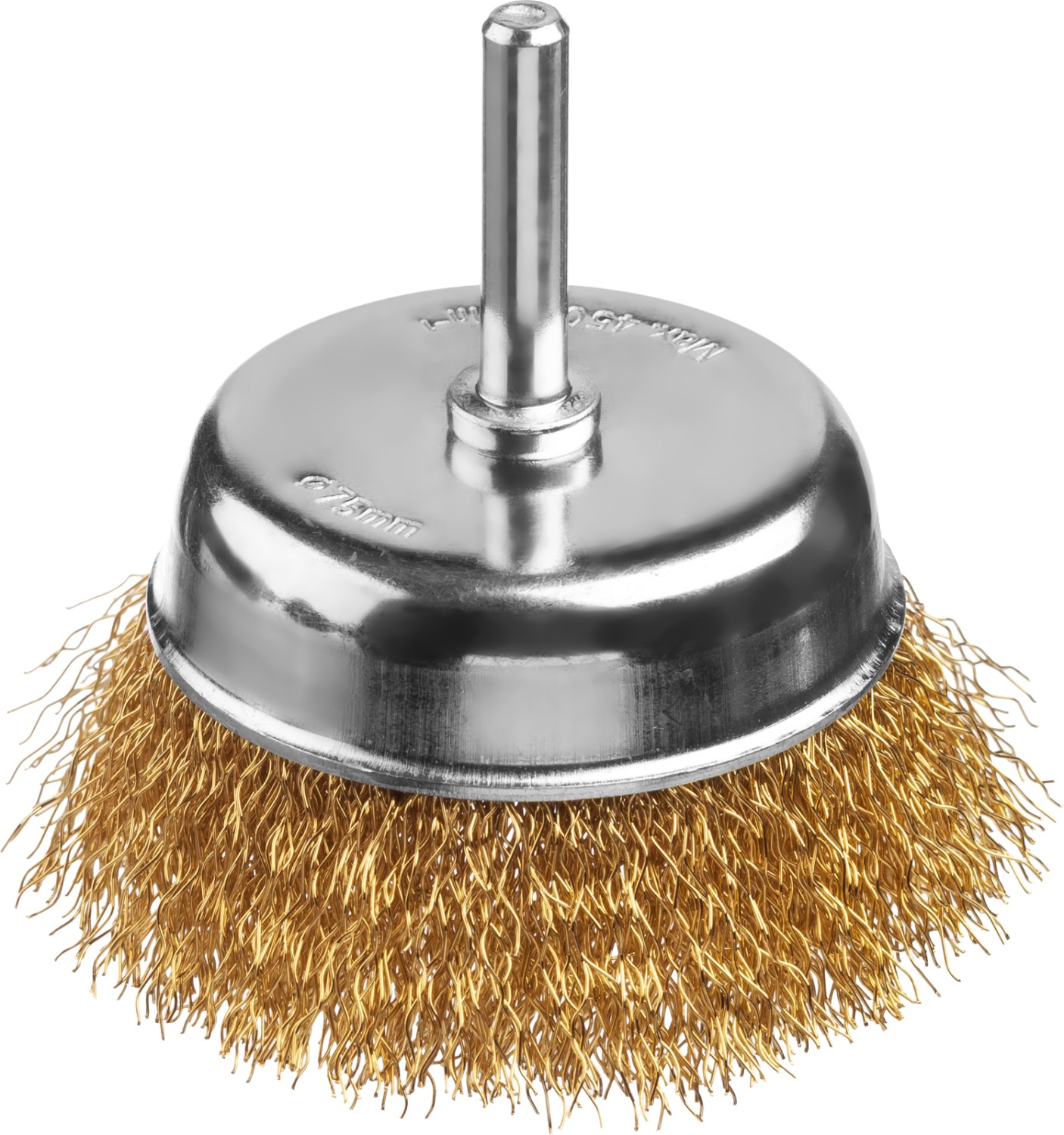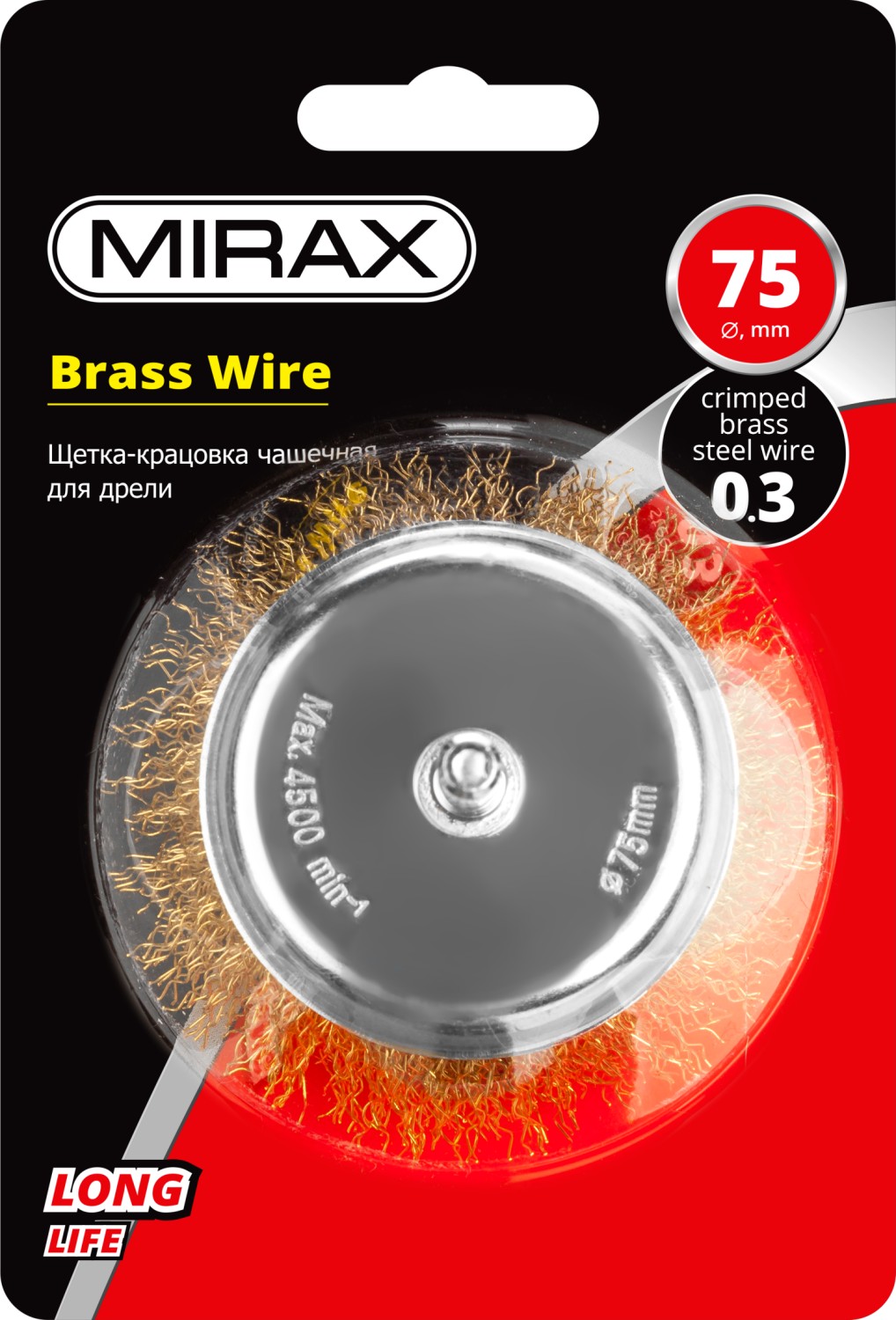 MIRAX 75 мм, витая стальная латунированная проволока 0.3 мм, щетка чашечная для дрели (35147-075)