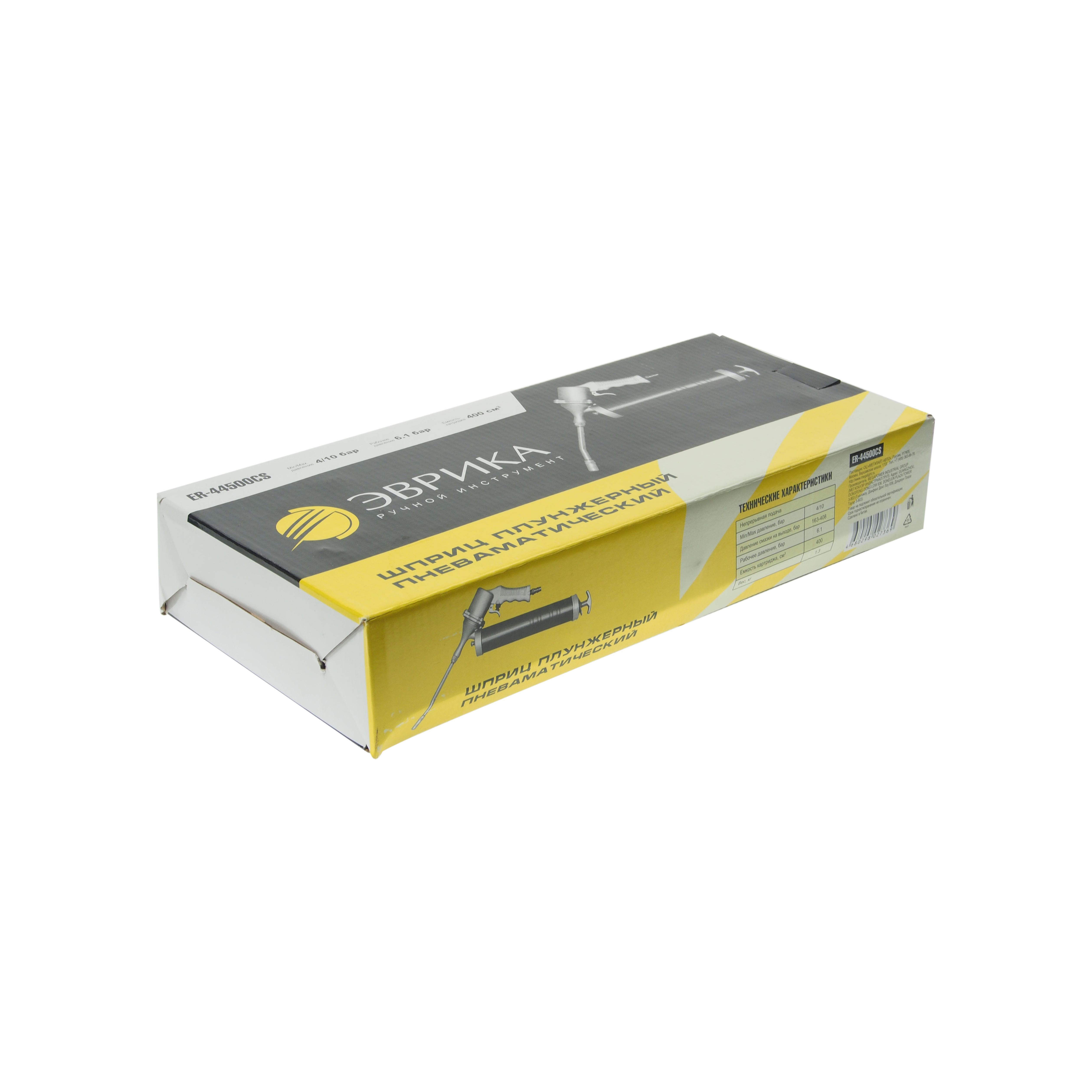 Плунжерный пневматический шприц съемный шток; давление воздуха 4.0 бар ЭВРИКА ER-44500CS не требует больших усилий для подачи смазки за счет наличия пневматического механизма.