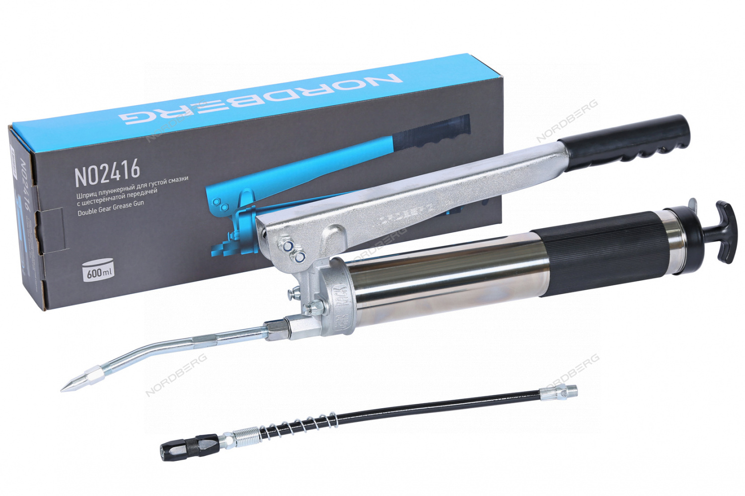 Плунжерный шприц для густой смазки NORDBERG NO2416 – вспомогательное оборудование для обслуживания узлов и агрегатов автотранспортной техники и промышленного оборудования в автосервисах и СТО.